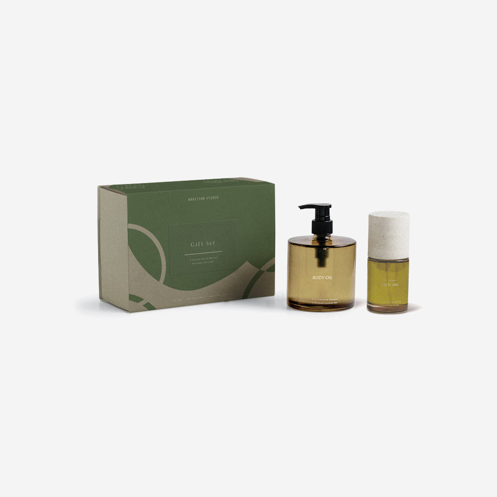 A plant based Ritual set for your face, hands and body encased in a beautiful gift box. Includes Addition Studio's All Natural Face Oil and Body Oil.