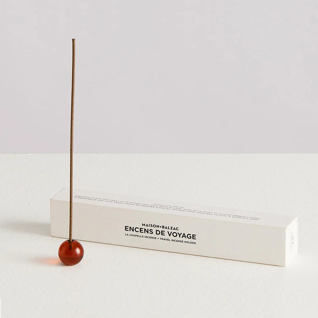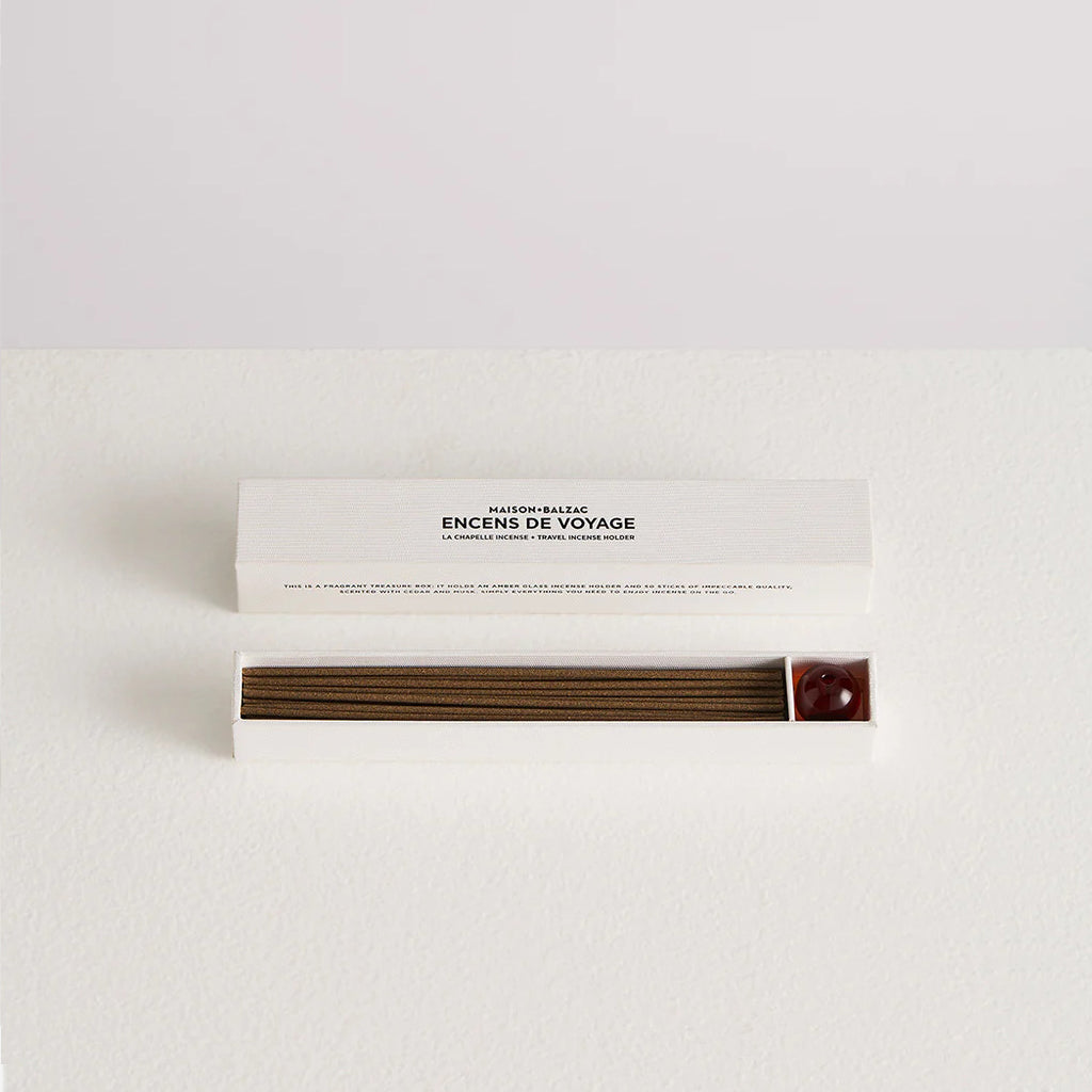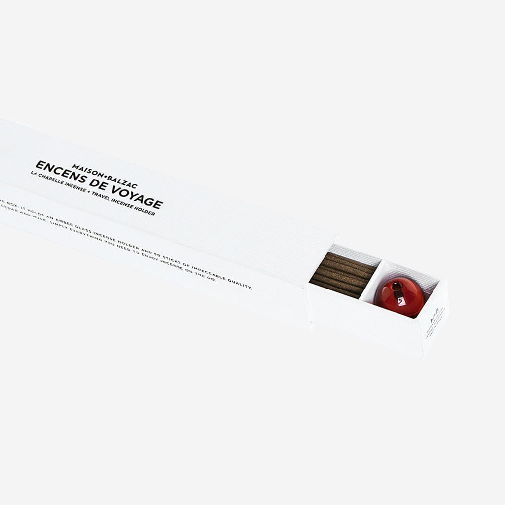 This is a fragrant treasure box: it holds an amber glass incense holder and approximately 50 sticks of impeccable quality, scented with cedar and musk. Simply everything you need to enjoy incense on the go.