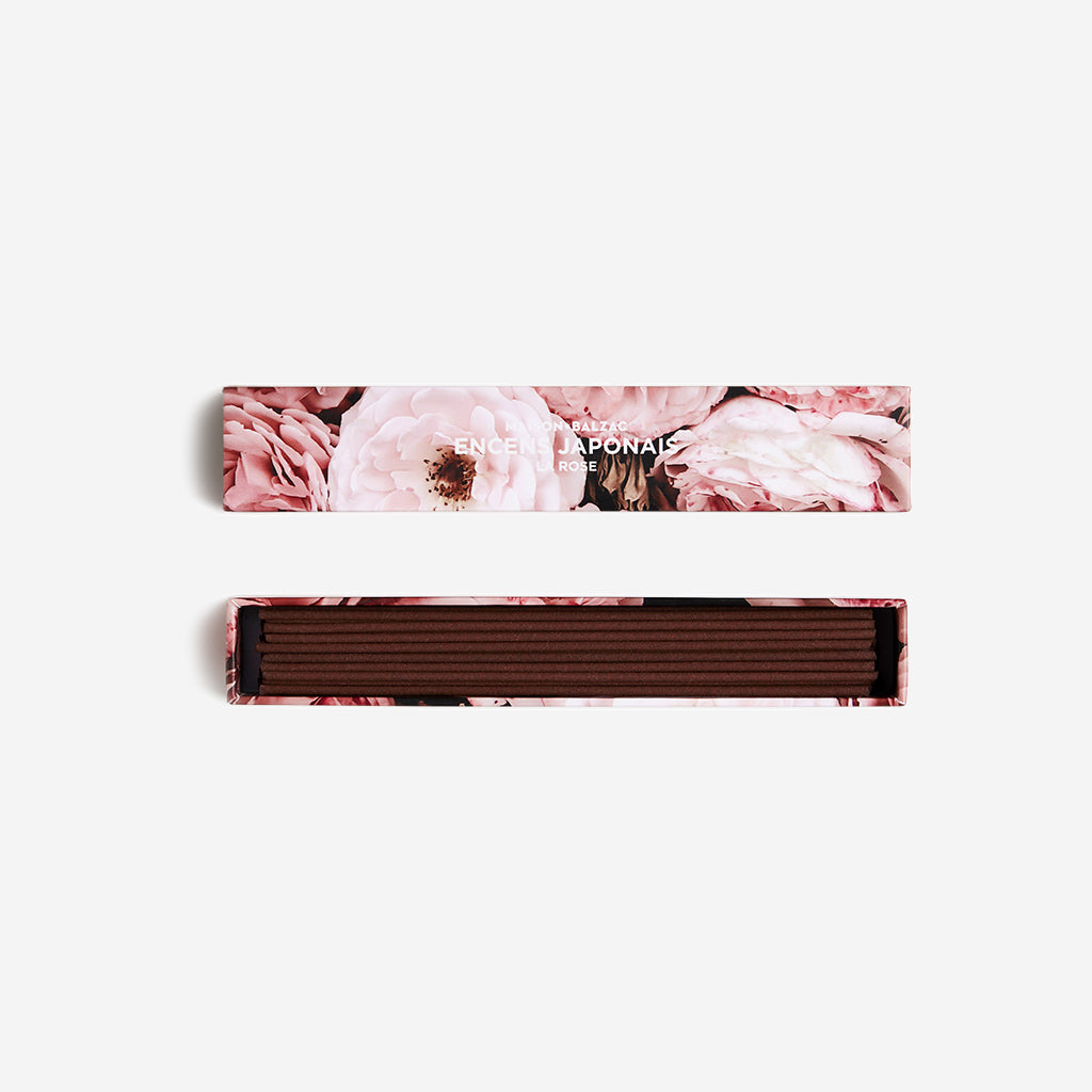 Our signature rose scent has been reimagined in the form of woody incense sticks. Inspired by Jeanine Balzac, grandmother of founder Elise Pioch, who used to wear Joy by Jean Patou and would fill her home with roses from the garden.