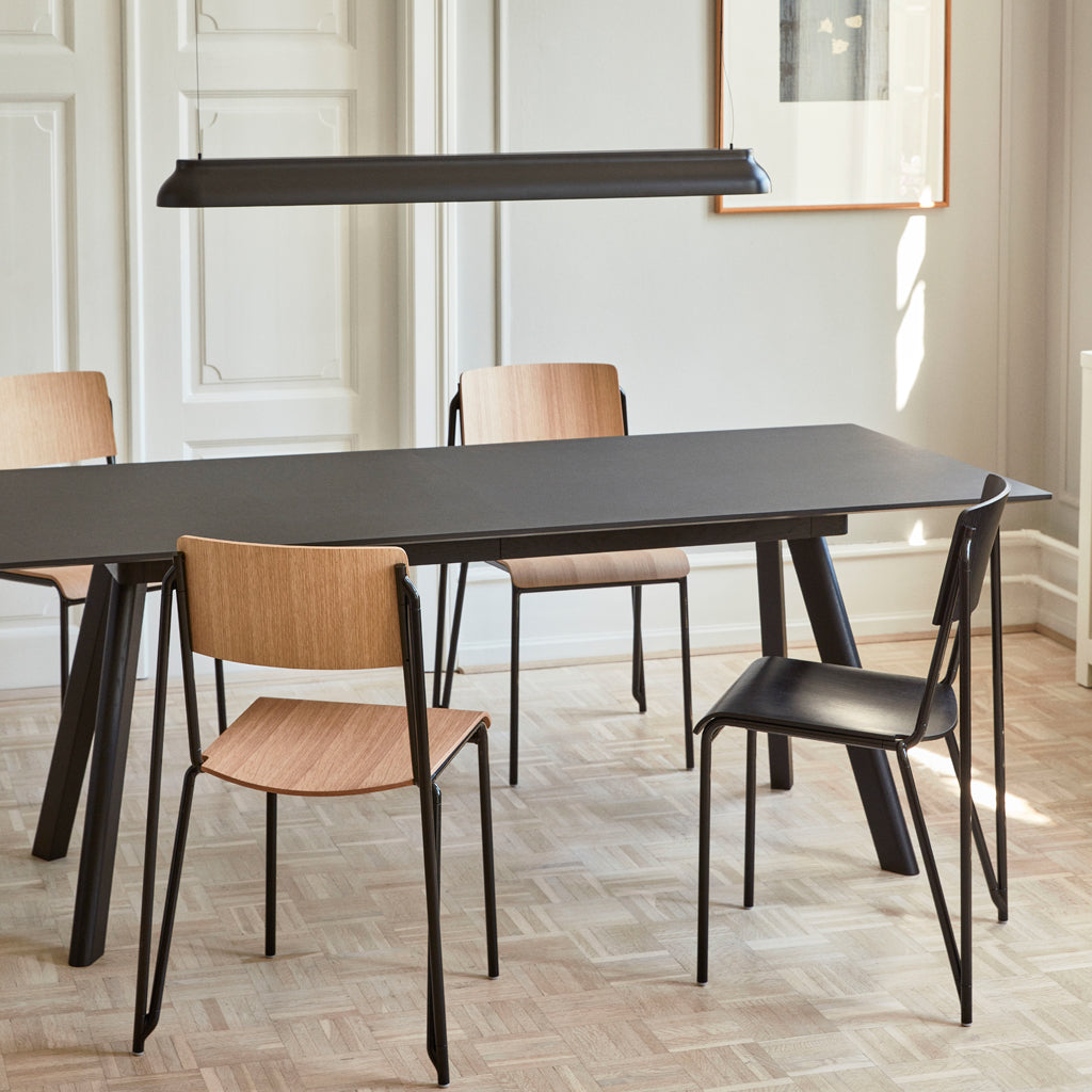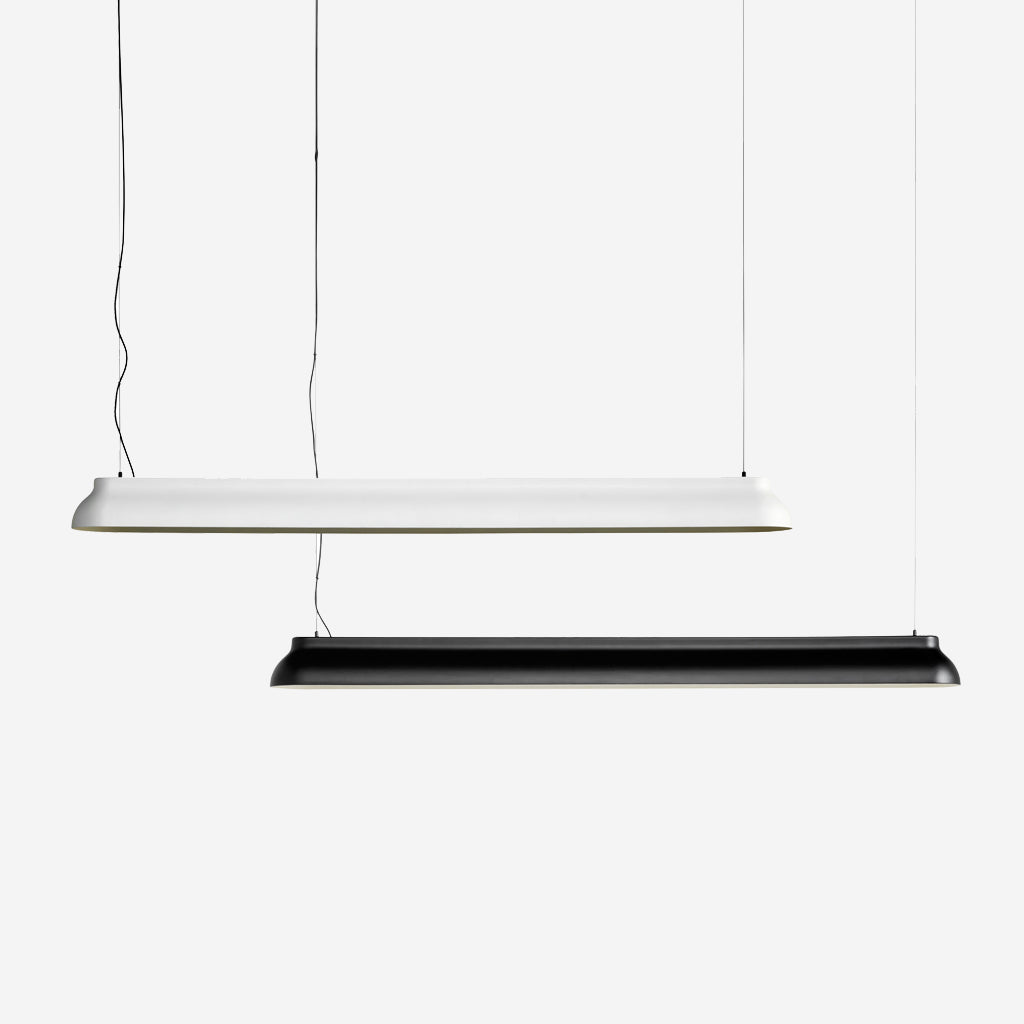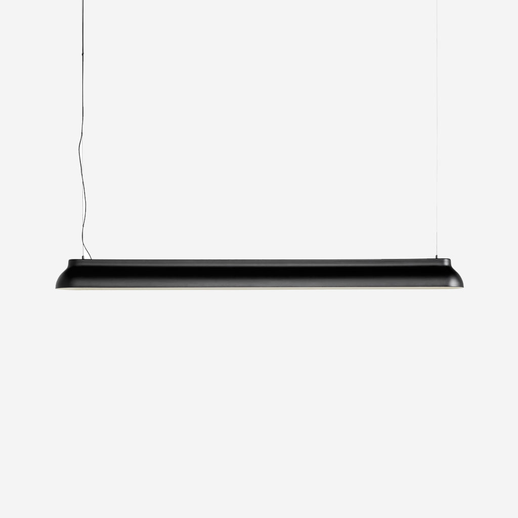 Pierre Charpin's PC Linear is the latest member to join the family of PC lamps. The new design shares the same simple and elegant profile that is present in the rest of the family. The PC Linear's shade is pressed from a single aluminium component with a wet-sprayed finish. The linear design is ideal for suspending over meeting or dining tables, as well as for illuminating exhibition shelves in commercial spaces. The PC Linear is available in black or white and is suitable for both contract and domestic use.
