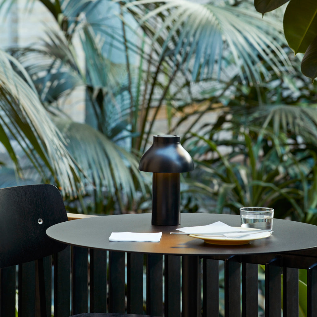 Pierre Charpin’s PC Portable Lamp is a refined and portable freestanding lamp for indoor and outdoor use. Constructed in robust plastic and featuring a matte scratch- and water- resistant finish, its battery-powered design gives the freedom and flexibility to move it anywhere. The light source is hidden from view by a polycarbonate diffuser, available with both a directional and ambient lamp shade, depending on the desired use. The PC Portable Lamps are available in several mono-colour designs or a selection of playful colour combinations, making them ideal for table lighting in numerous domestic environments, as well as at cafés, restaurants, and other public areas.