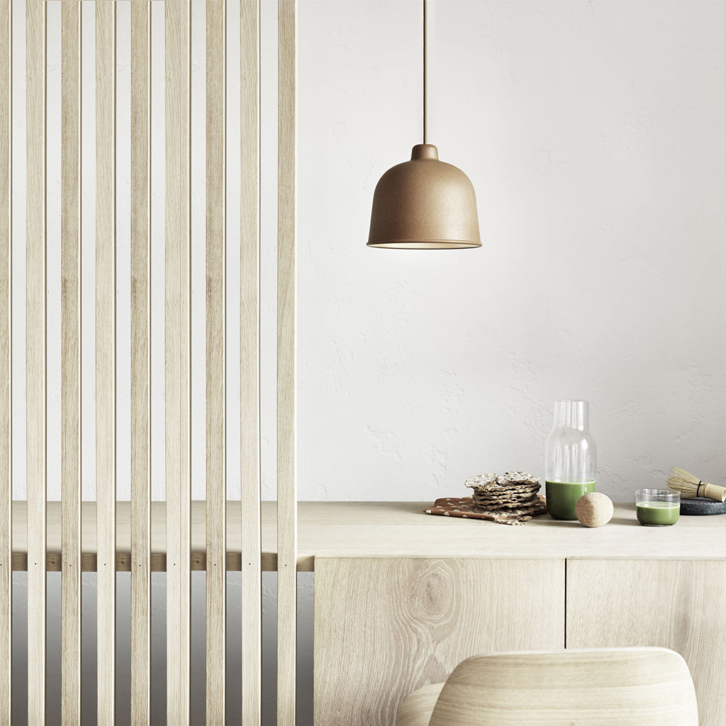 The traditional pendant silhouette receives a poetic reinterpretation with the Grain Lamp. Simple and elegant, the lamp has small grains of fiber in its surface, creating a subtle texture and change in the diffusion of light. The pendant includes an LED light bulb that lasts for up to 10,000 hours and provides a warm, natural glow.