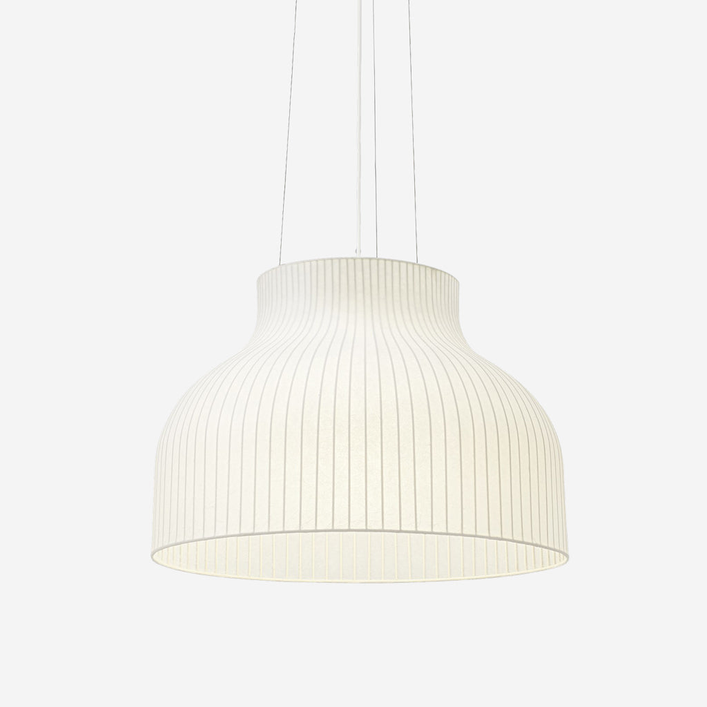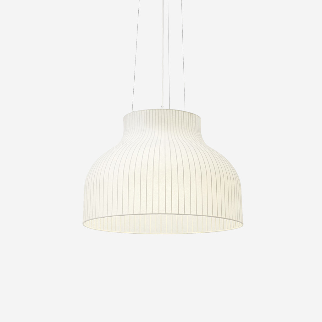 The Strand Pendant Lamp is designed with soft, playful forms for a modern expression. The design provides both diffused lighting and direct lighting, the latter through its top and bottom opening. The design is made in a sprayed cocoon material that consists of tiny strands for a complex, intriguing structure that, paired with its modern form, gives the Strand Pendant Lamp an almost cloud-like appearance. With its cocoon material filtering light through for a warm, comfortable glow, the Strand Pendant Lamp hovers lightly in space, bringing comfort, harmony and a refined sensitivity to any room.
