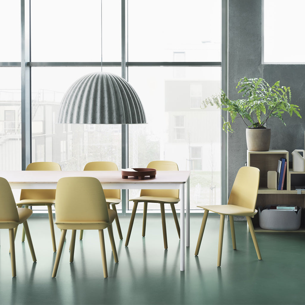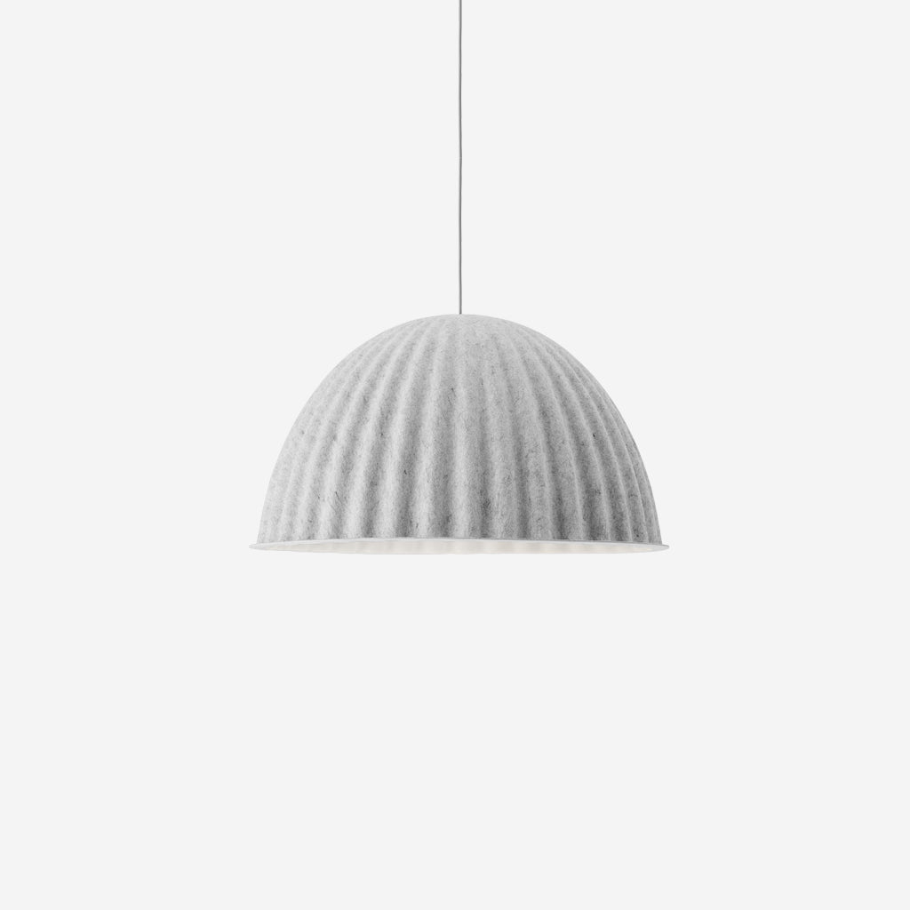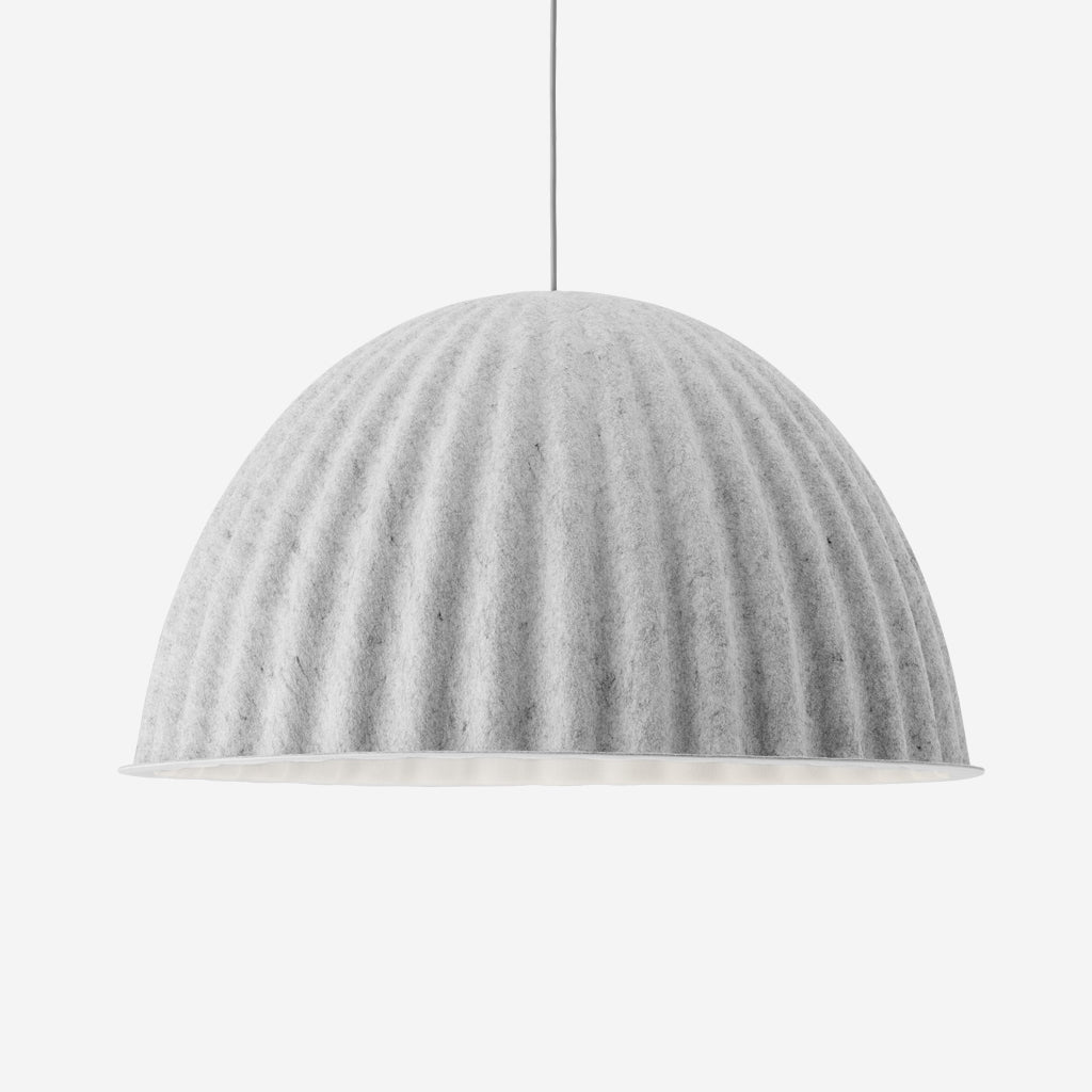 Made from recycled plastic felt, the Under The Bell Pendant is an eye-catching lamp brings a tactile and modern expression to any space. Whether hung over a dining table or in an office or lobby, it also absorbs noise and helps improve the room acoustics.