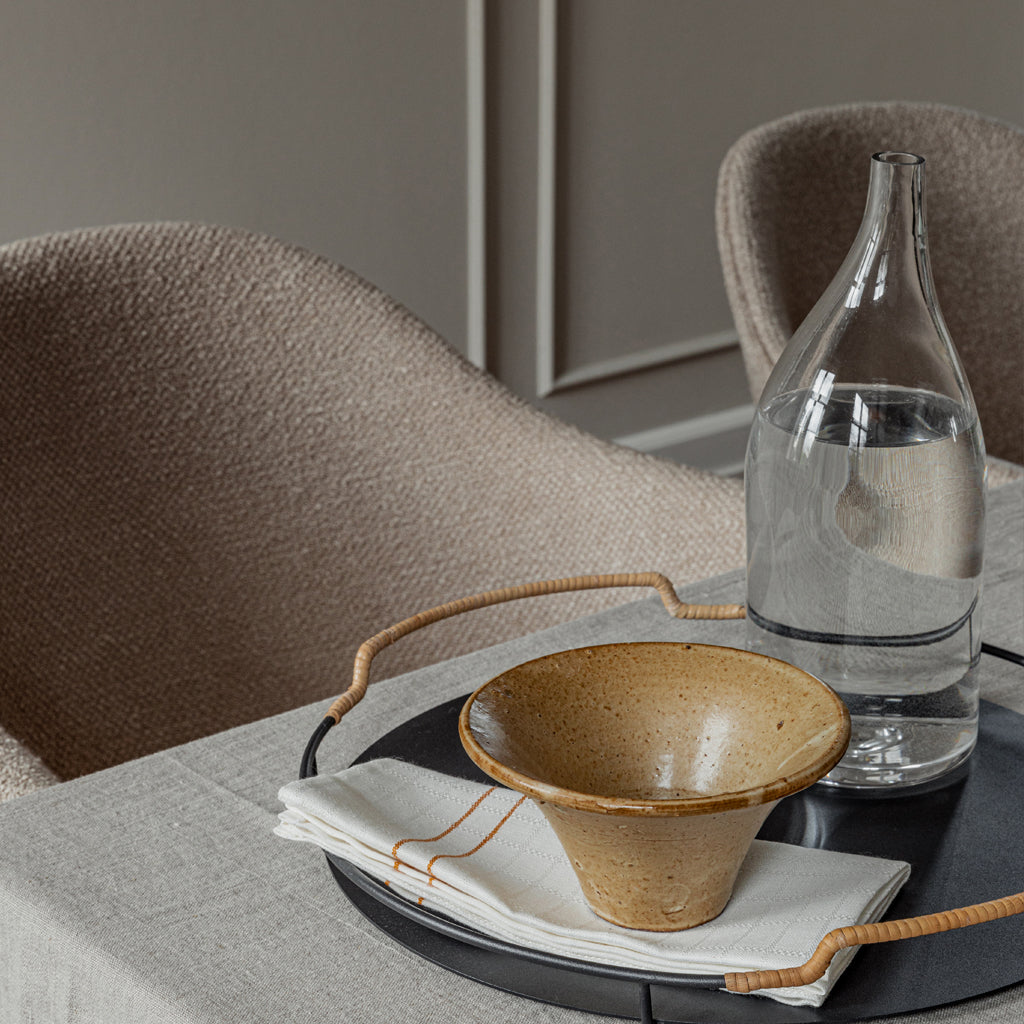 The Balcony Serving Tray makes serving guests a pleasurable experience. Crafted in sleek steel softened with rattan for a handcrafted finish and a firm yet comfortable grip, it moves easily from surface to surface and room to room to elegantly display the fruits of your labour in the kitchen. Pairing perfectly with our collection of tableware essentials, the tray evokes a feeling of nostalgia with its mid-century Modern aesthetic, reimagining the traditions of togetherness.