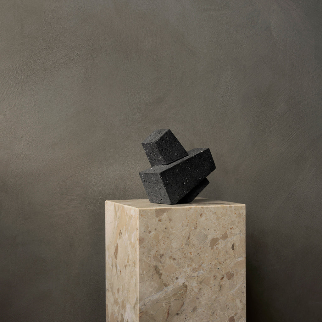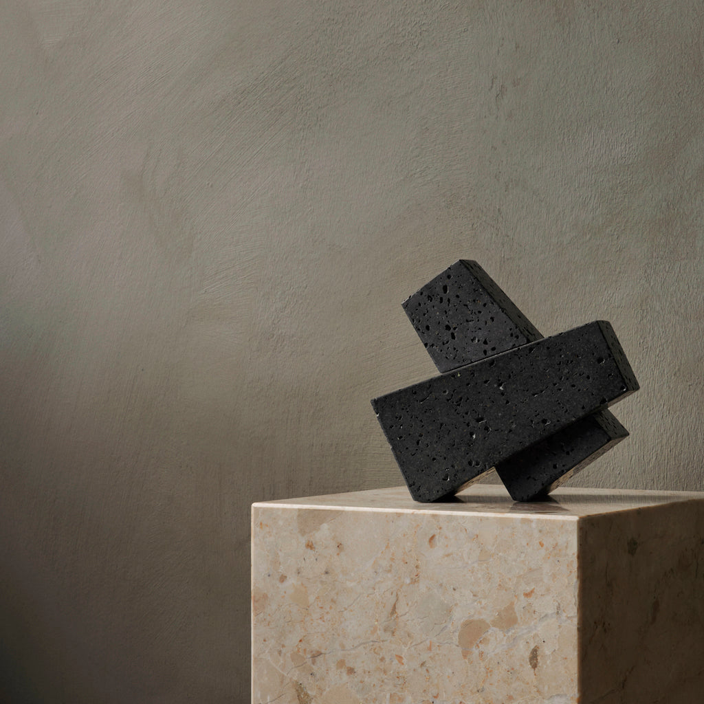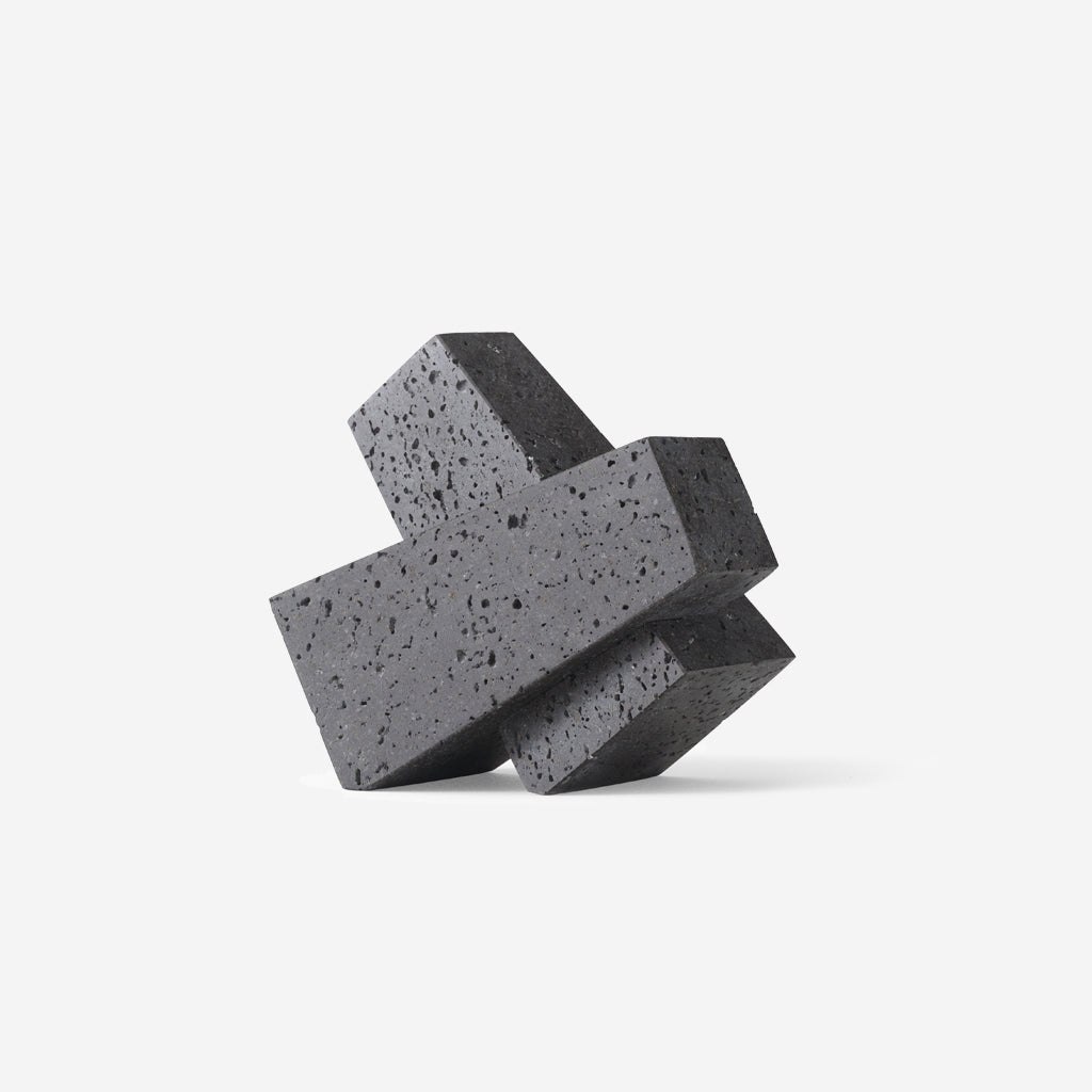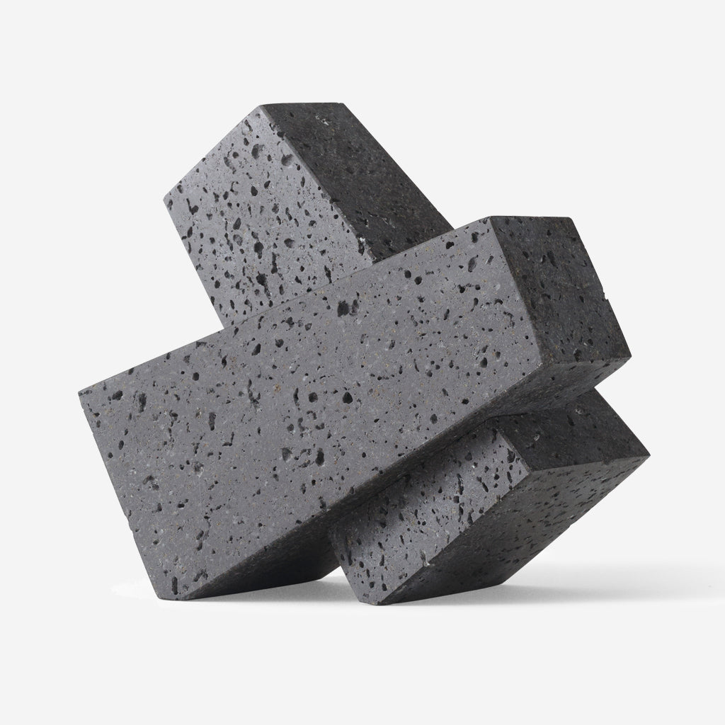 Designed to neatly hold books in place, the abstract forms of the Converge Bookends are shaped from lava stone – a dark and porous material with a textured surface. Use as intended, one at either side of a line of books, or interlock together to create a sculpture that delights with its intriguing shape and touch.
