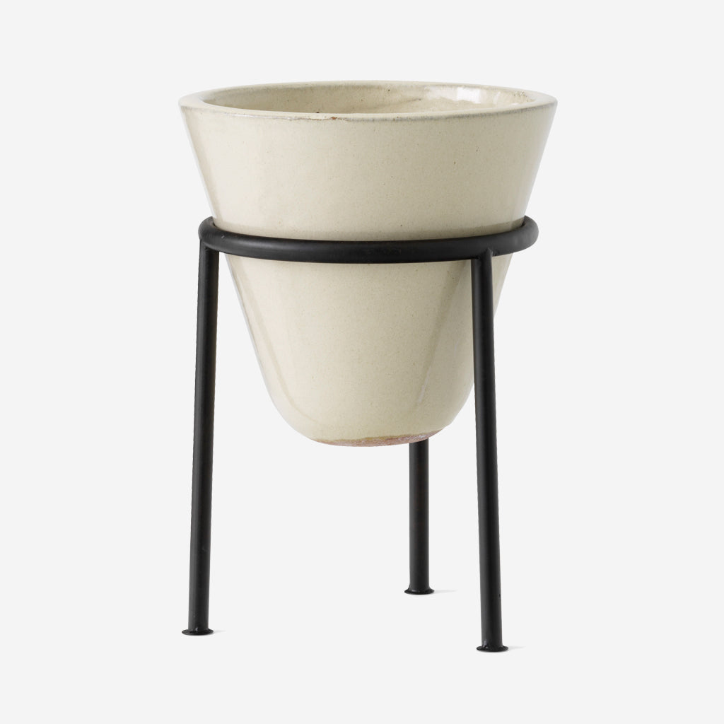 Taking its cues from ancient amphoras, the Daiza Planter is shaped from stoneware and finished with a glossy, reactive glaze that lends the design a beautiful depth of colour and texture. The planters are elevated on iron feet, allowing them to be grouped in clusters. Made for indoor use, the Daiza Planter can also be used outside when the guidelines included with purchase are followed.