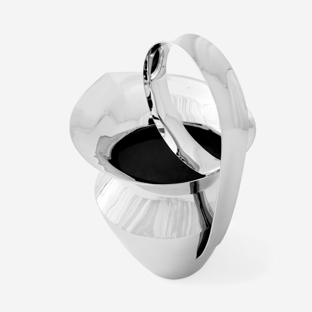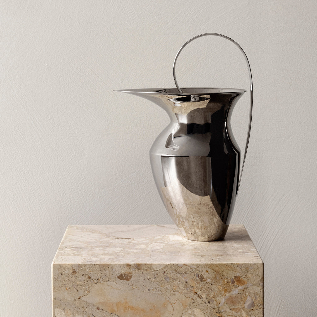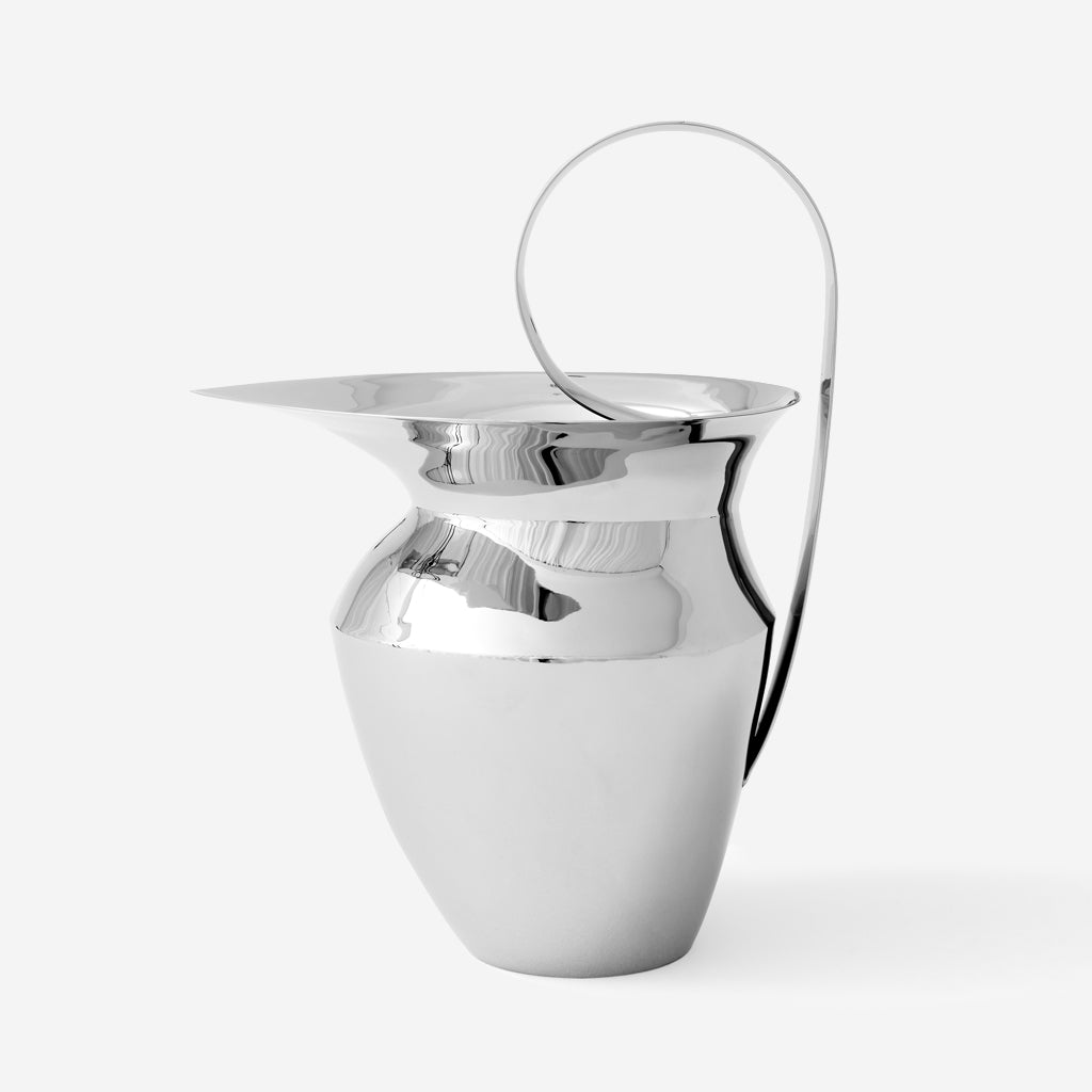 Equal parts practical and beautiful, the sweeping silhouette of the Etruscan Pitcher is shaped from mirror-polished stainless steel for a hardwearing yet elegant finish. Its exaggerated proportions include a tall, curved top handle and a tapered spout for easy pouring. The voluminous design makes an equally bold statement when serving chilled drinks at the table as it does used as a decorative object or cut flower vase.