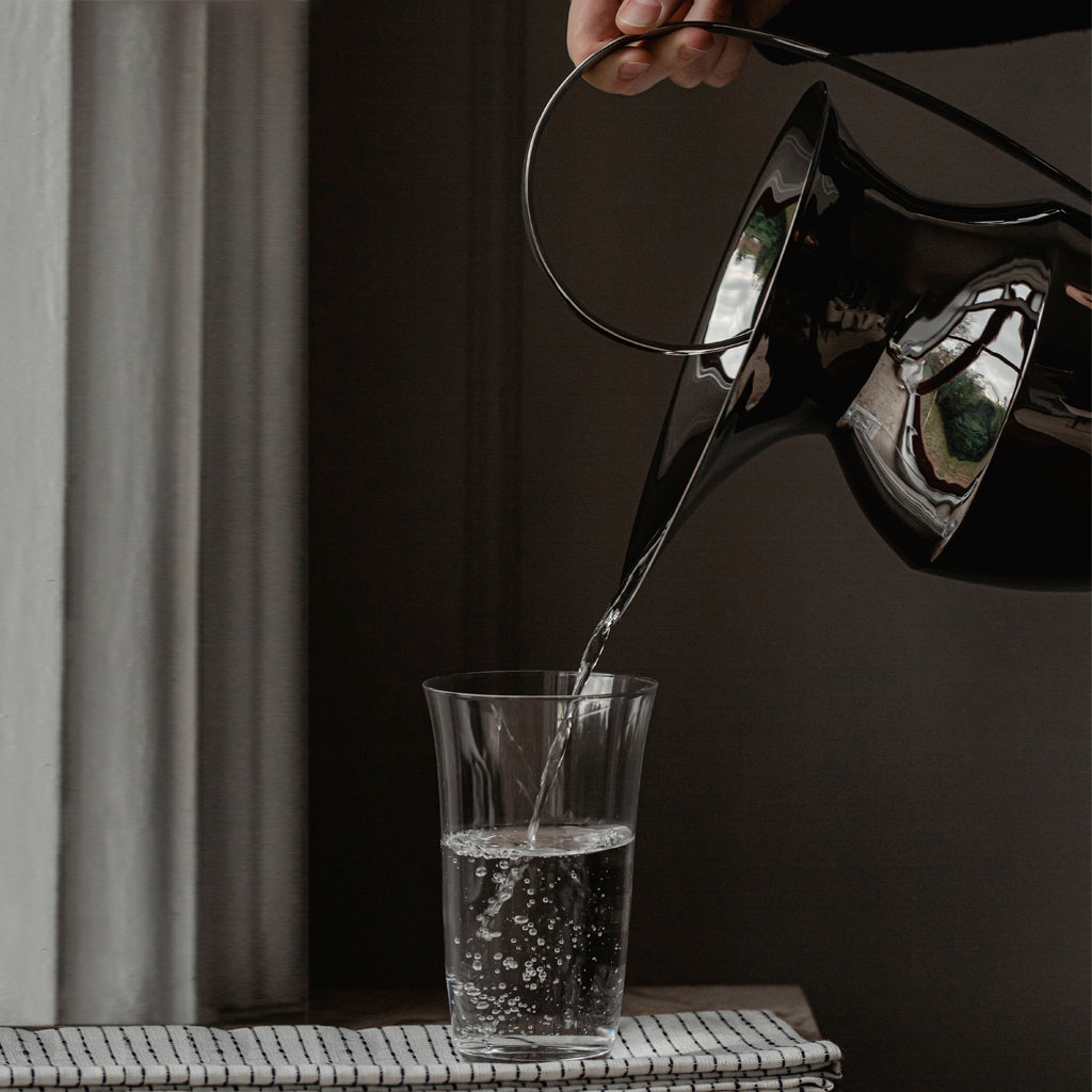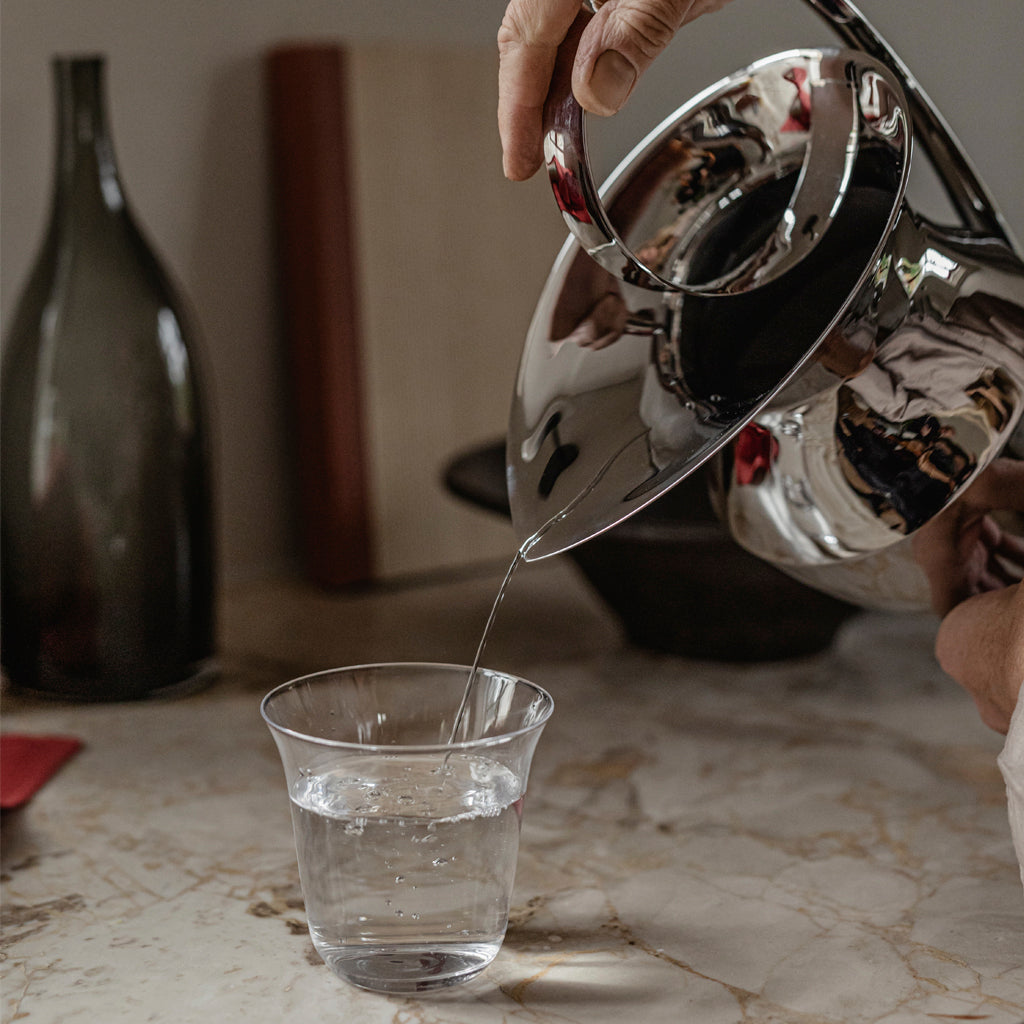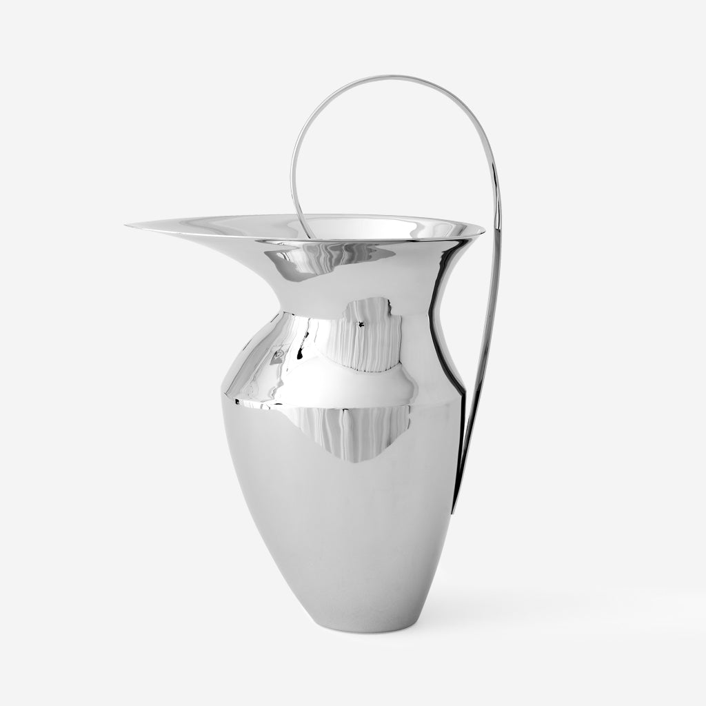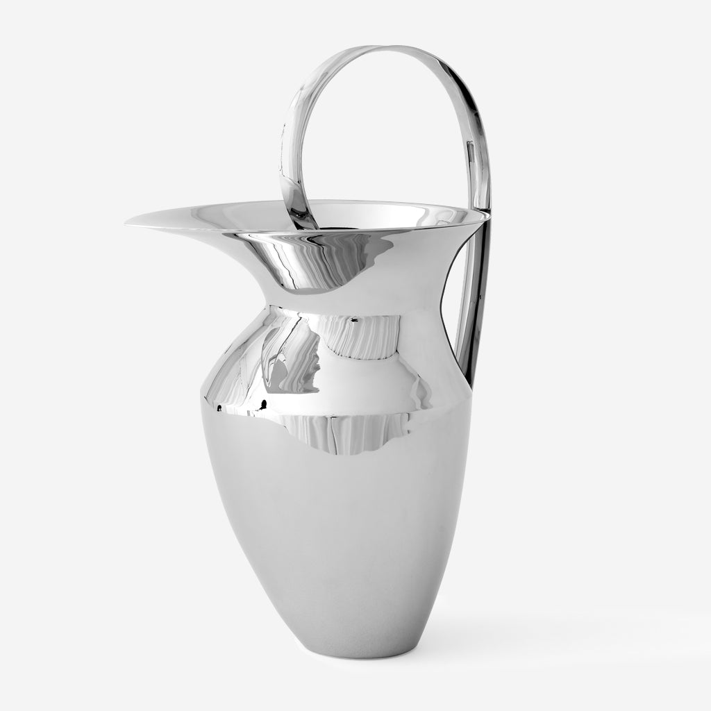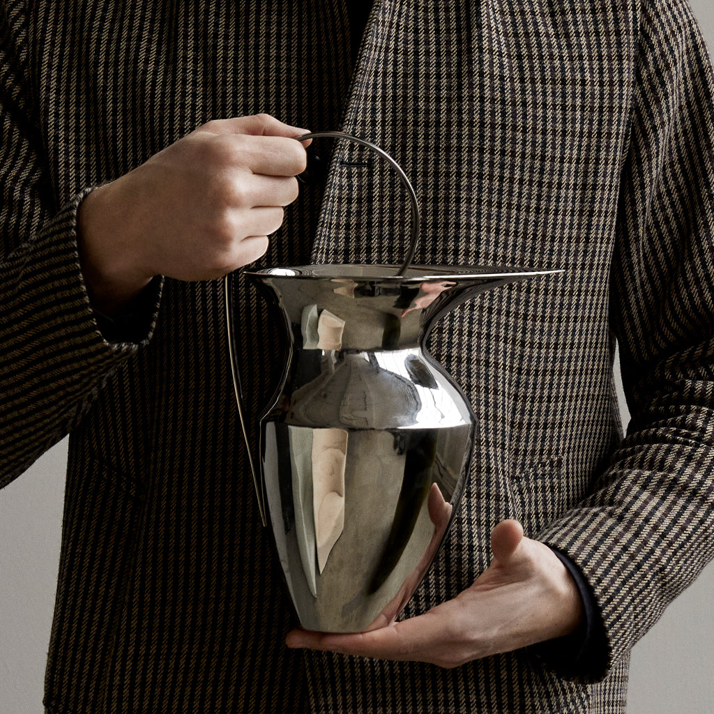Equal parts practical and beautiful, the sweeping silhouette of the Etruscan Pitcher is shaped from mirror-polished stainless steel for a hardwearing yet elegant finish. Its exaggerated proportions include a tall, curved top handle and a tapered spout for easy pouring. The voluminous design makes an equally bold statement when serving chilled drinks at the table as it does used as a decorative object or cut flower vase.