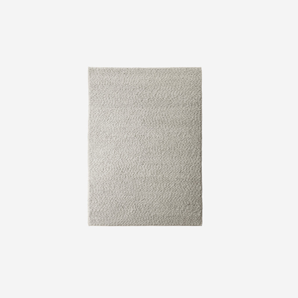 Conveying a sense of nature and celebrating natural materials, the gravel rug combines undyed wool fibers with an unexpected weaving technique that brings depth and complexity to the design.