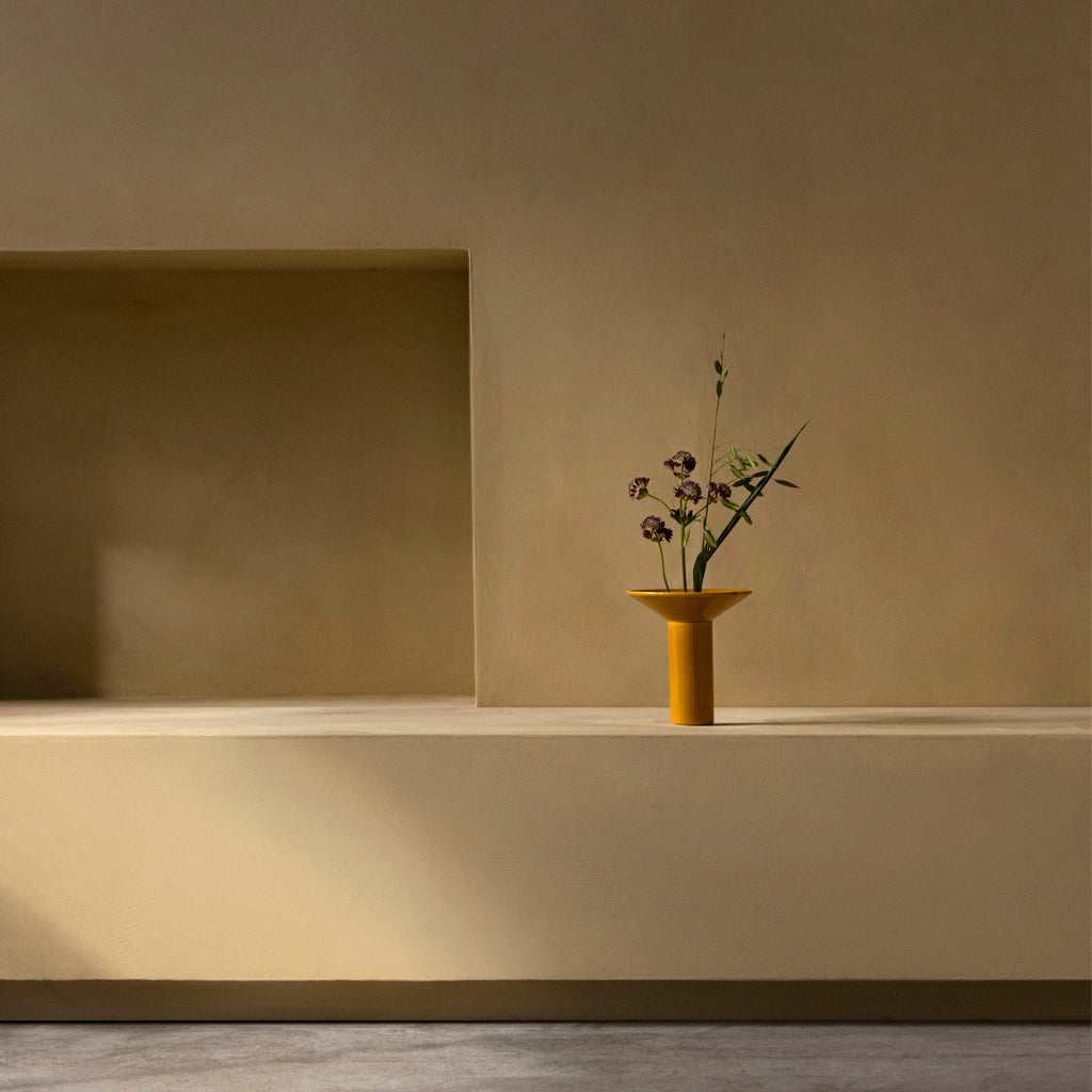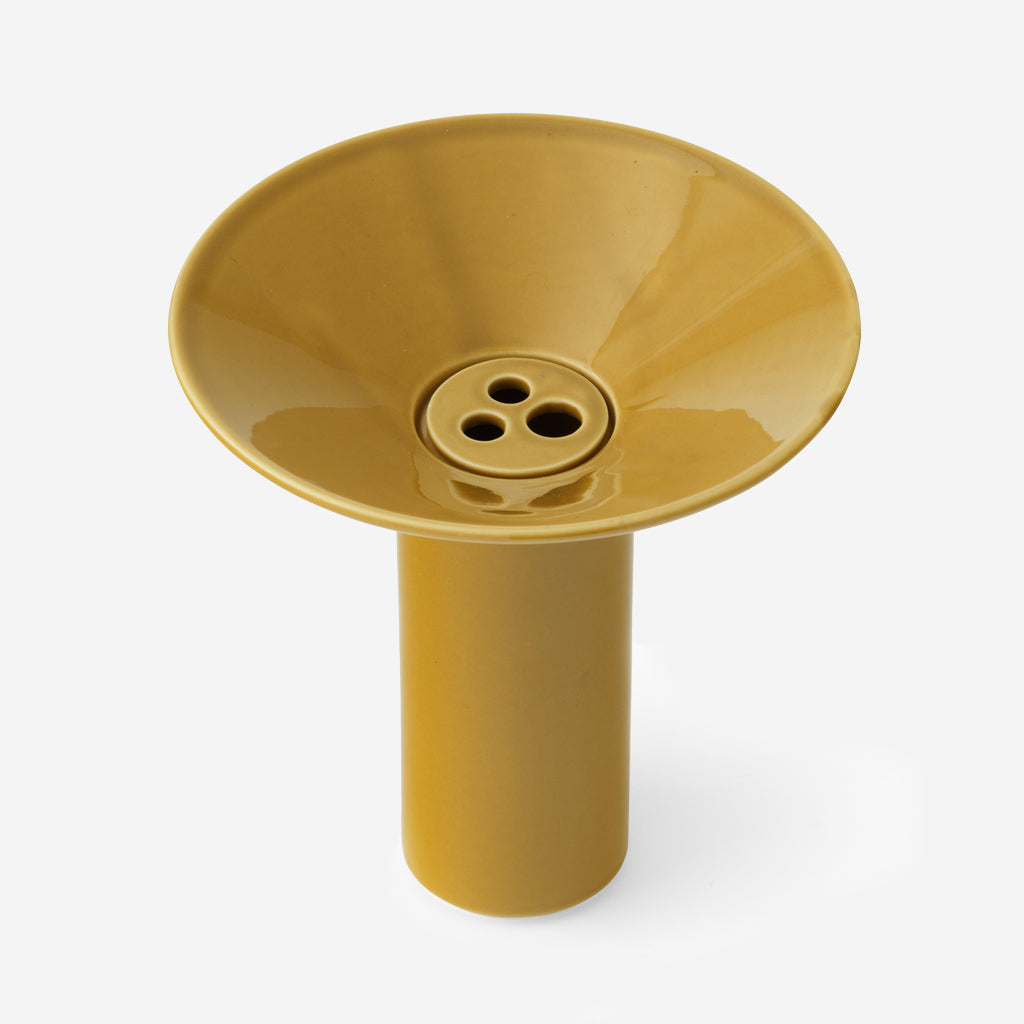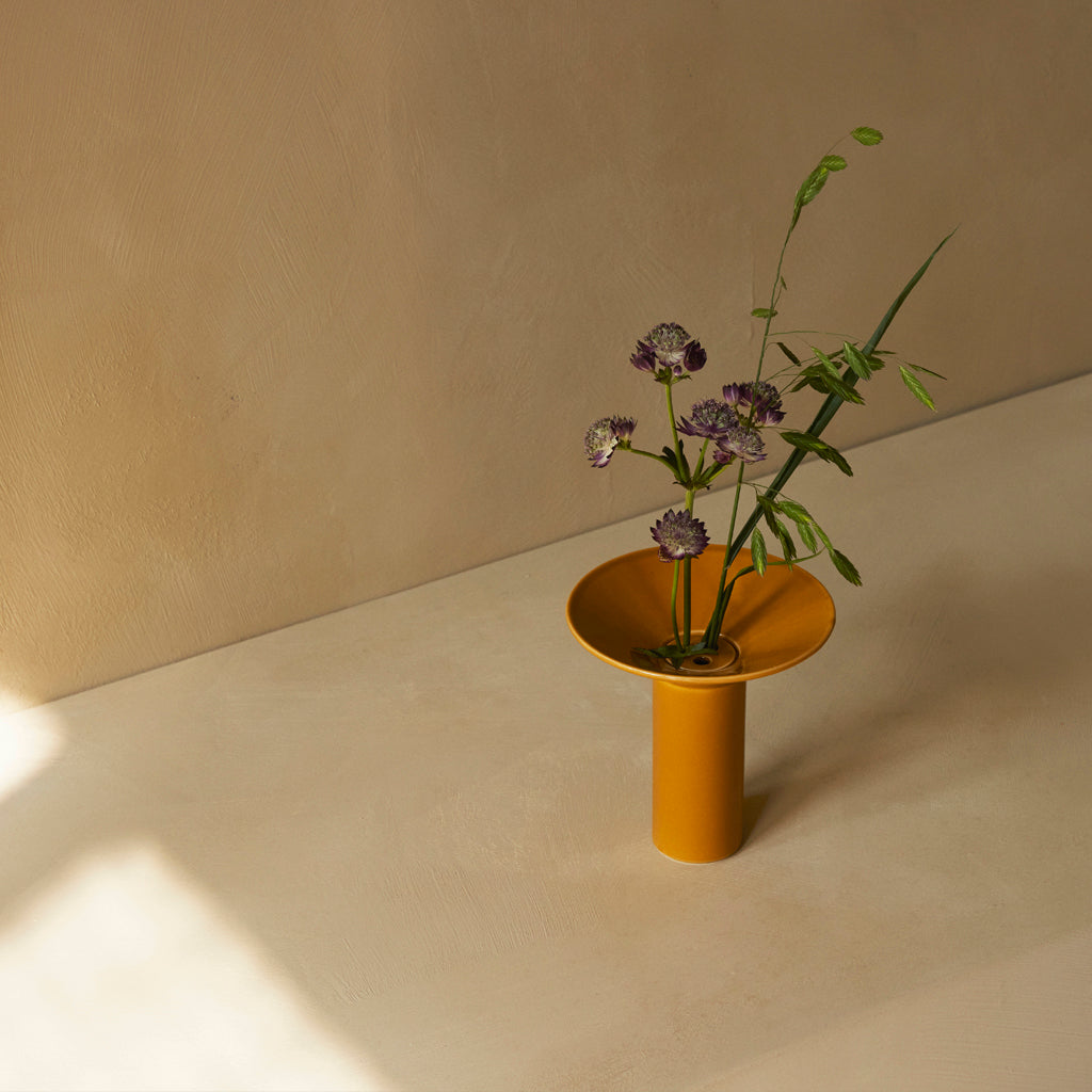 Hana is inspired by ikebana, the ancient Japanese art of flower arranging that uses few but carefully chosen and artfully positioned stems. Shaped around a central ceramic flower frog, or kenzan, Hana lets you create foolproof floral displays, holding flower stalks and branches in place at different angles. The kenzan can be removed for a more traditional arrangement. Designed in Copenhagen by Krøyer-Sætter-Lassen, the vase is available in three sizes in three unique finishes.