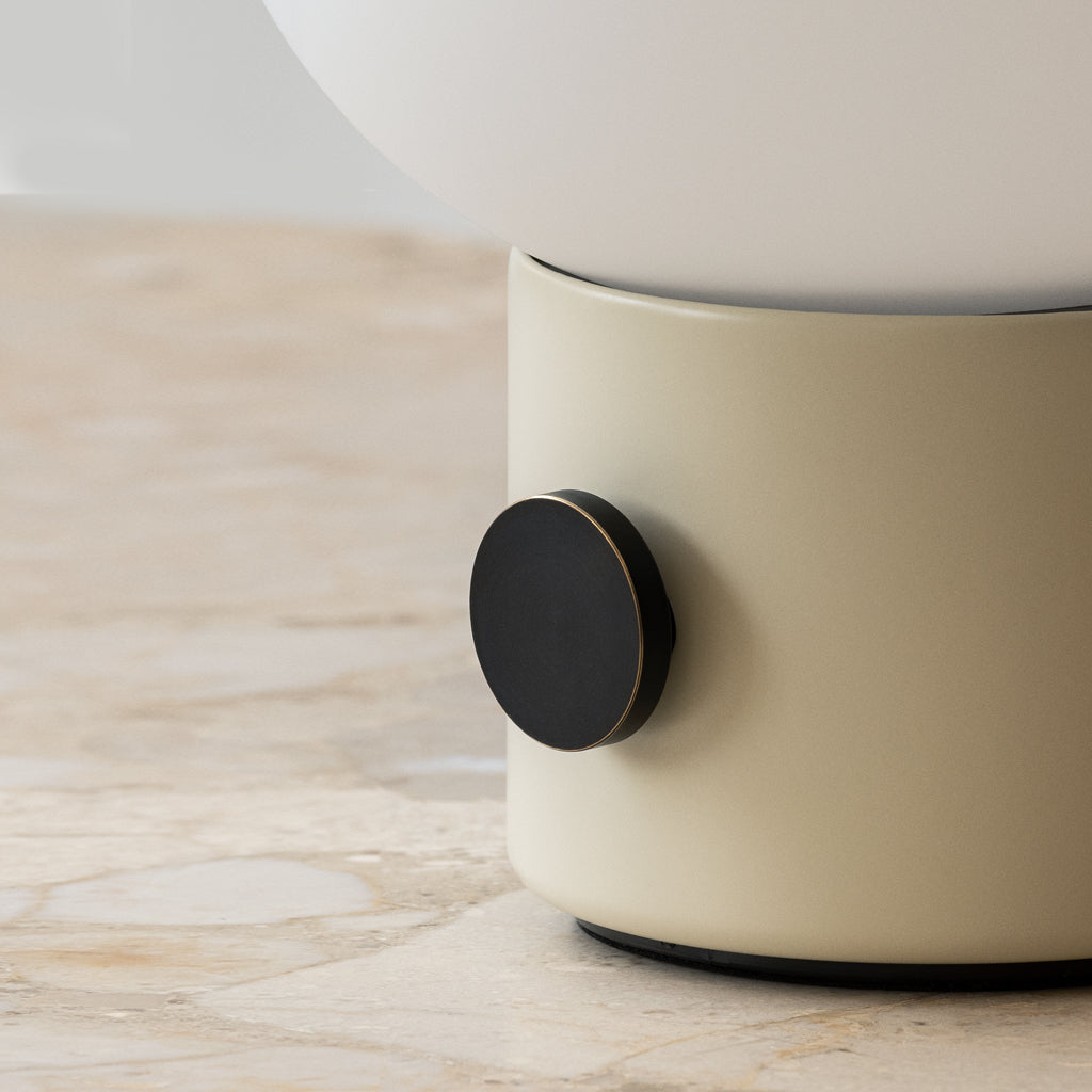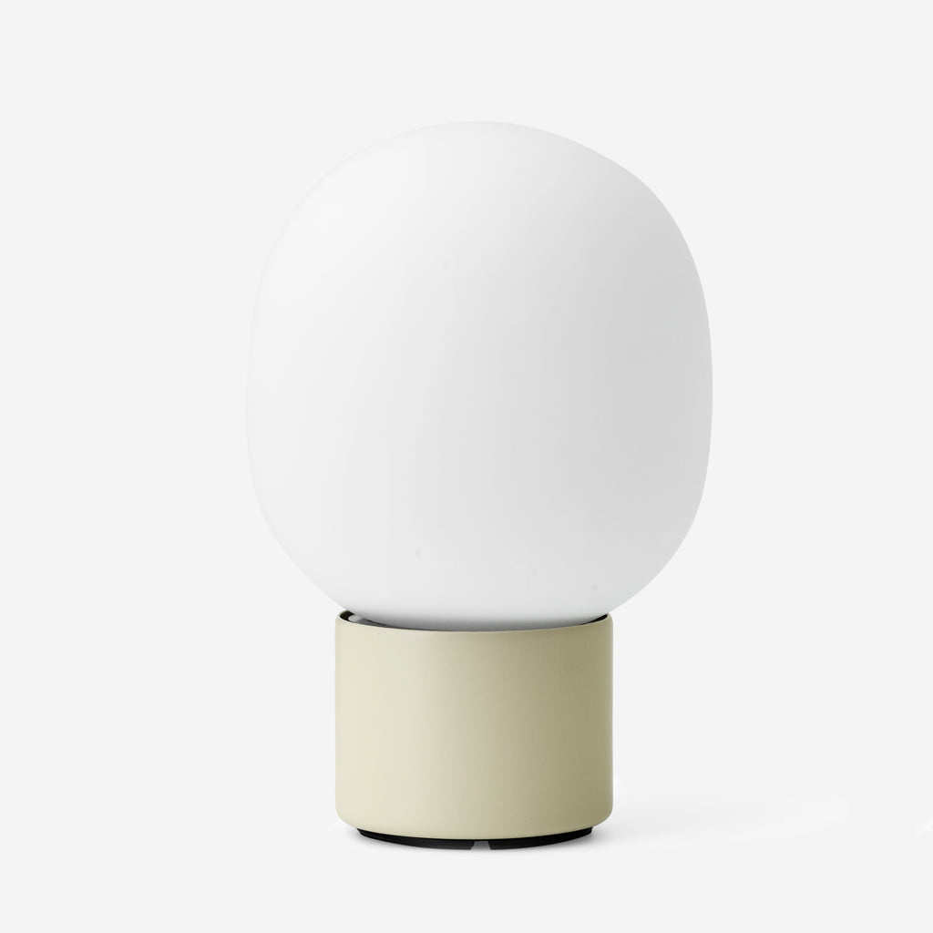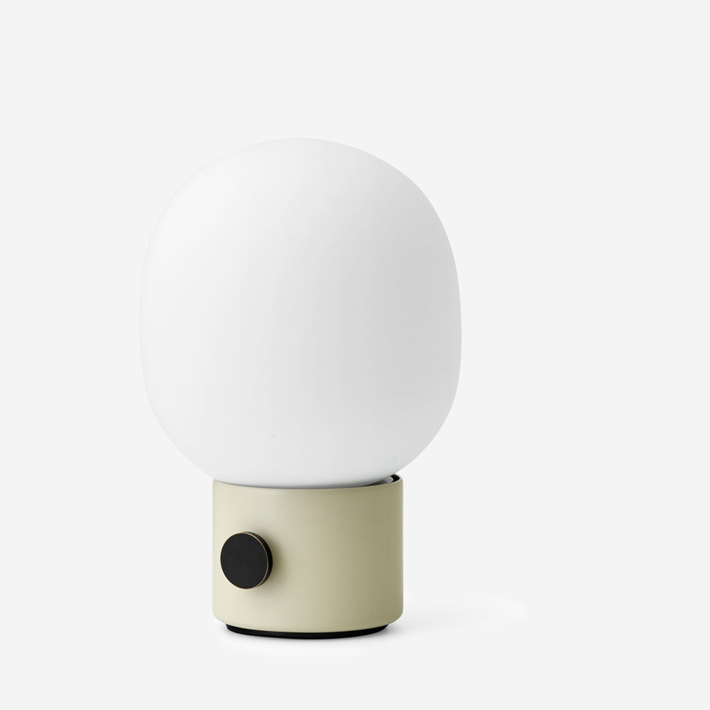 Our classic JWDA Lamp in a cordless version. Inspired by traditional oil lamps and crafted in contrasting materials, the JWDA Portable has the freedom and flexibility to move anywhere you want. Delivering 10 hours of adjustable light when fully charged, the small-scale design is defined by its elliptical glass shade and solid metal base with a brass dimmer switch. The cordless design charges via a concealed magnetic connector and USB cable. The cable charges with a standard USB charger plug. Comes without charger plug. The lamp is compatible with Audo's Charging Board.