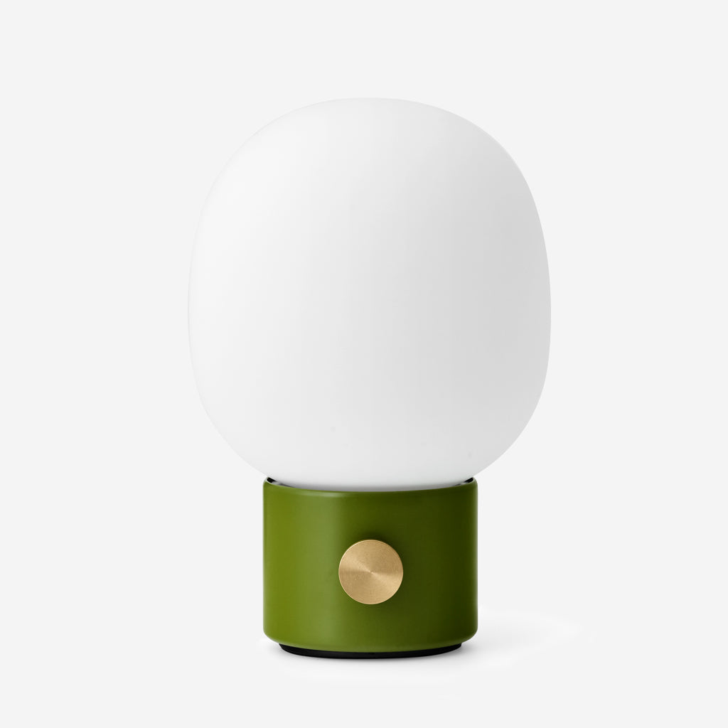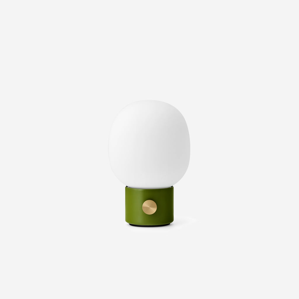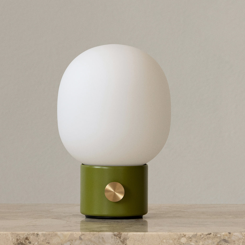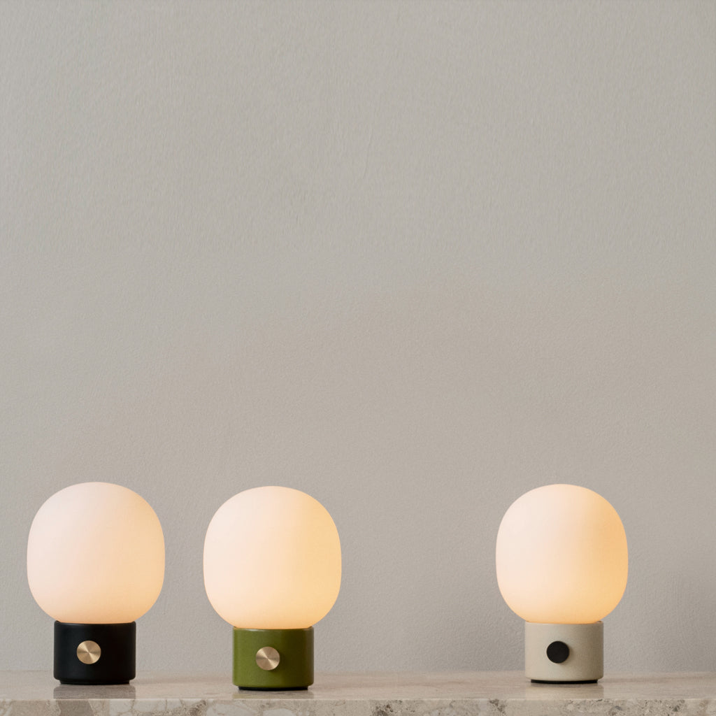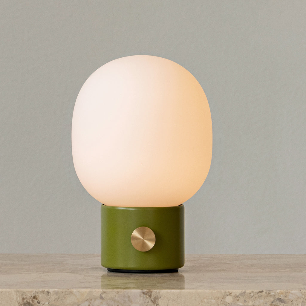 Our classic JWDA Lamp in a cordless version. Inspired by traditional oil lamps and crafted in contrasting materials, the JWDA Portable has the freedom and flexibility to move anywhere you want. Delivering 10 hours of adjustable light when fully charged, the small-scale design is defined by its elliptical glass shade and solid metal base with a brass dimmer switch. The cordless design charges via a concealed magnetic connector and USB cable. The cable charges with a standard USB charger plug. Comes without charger plug. The lamp is compatible with Audo's Charging Board.