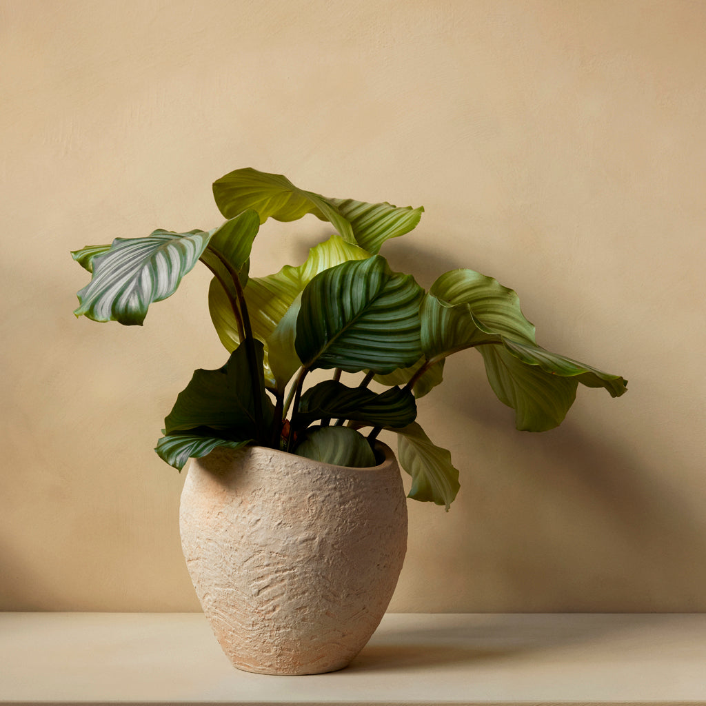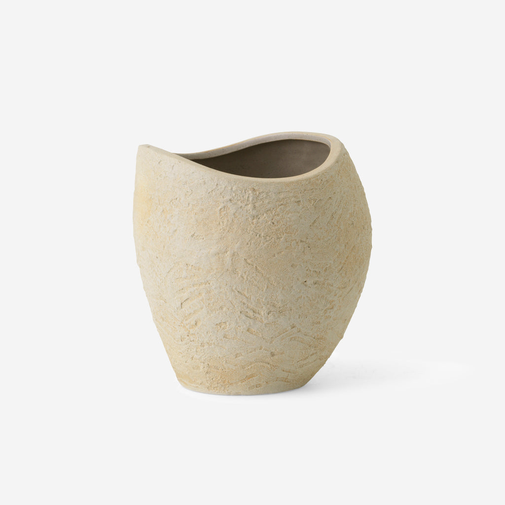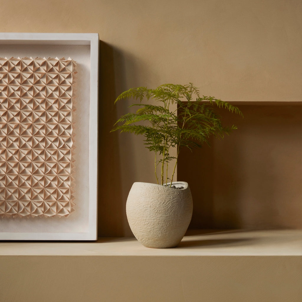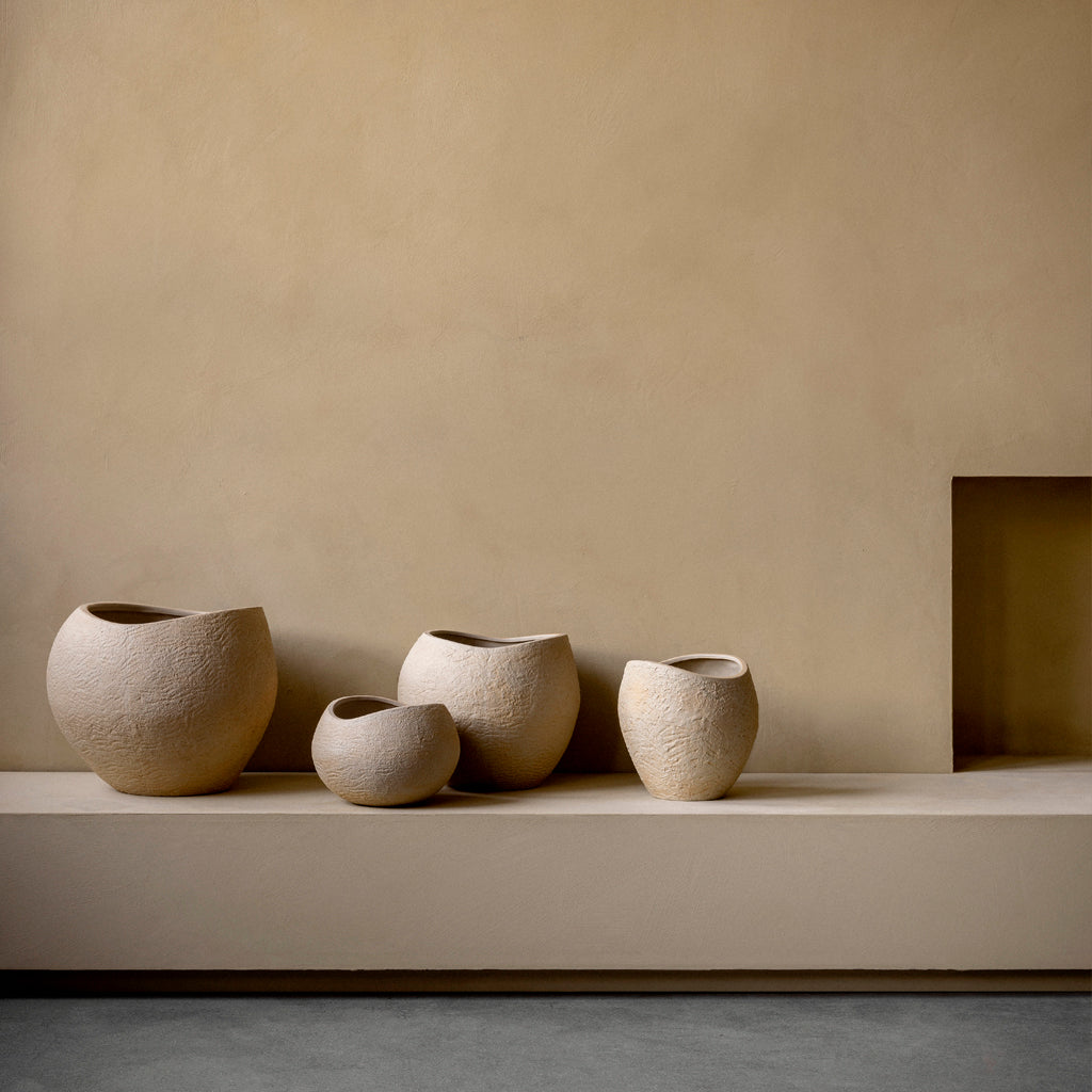 Characterised by their curves and irregular, furrowed surface, the Plantas Planters are made from matte ivory stoneware with a textured, natural appearance. Each piece is finished by hand and therefore entirely unique. Made for indoor use, the Plantas Planters can also be used outside when the guidelines included with purchase are followed.