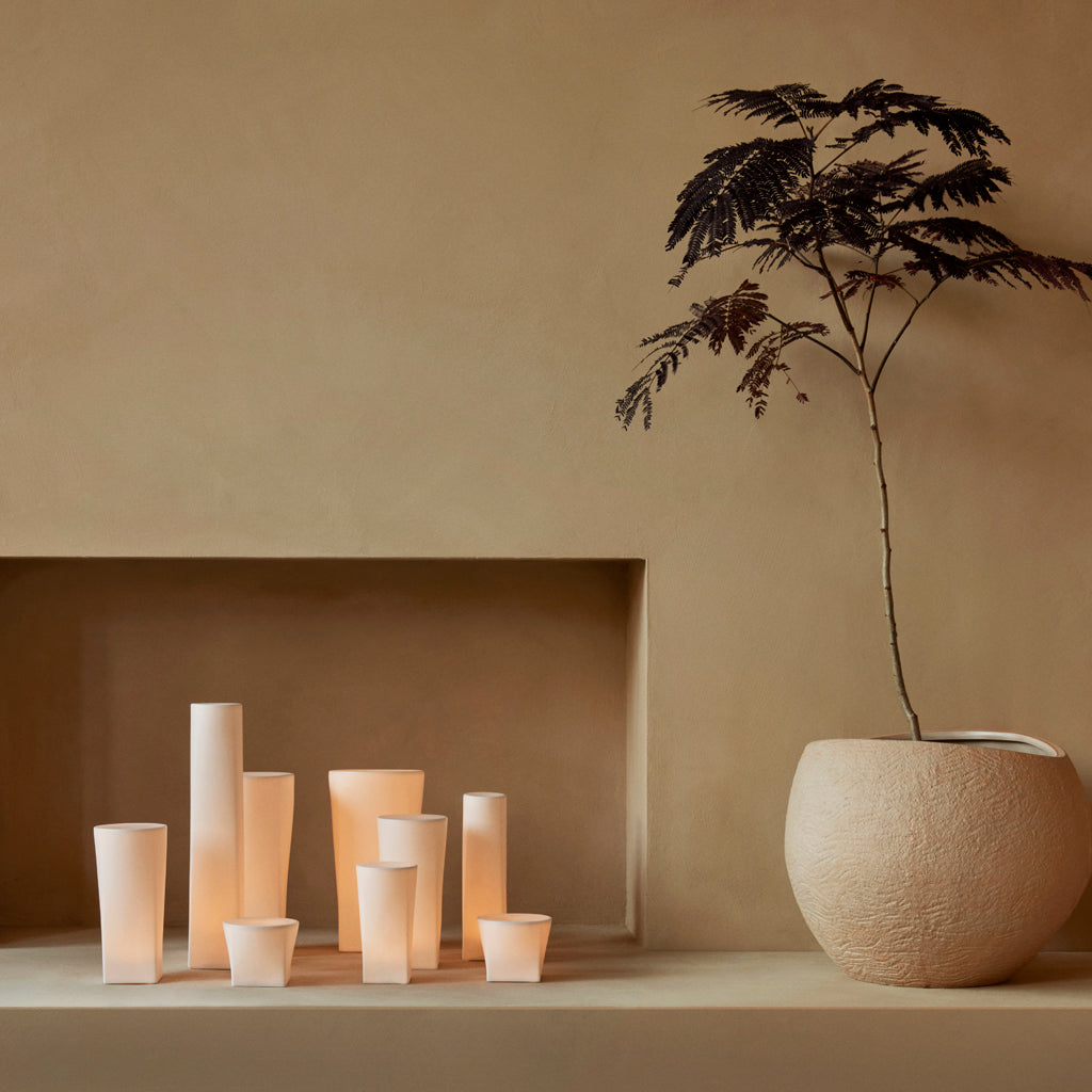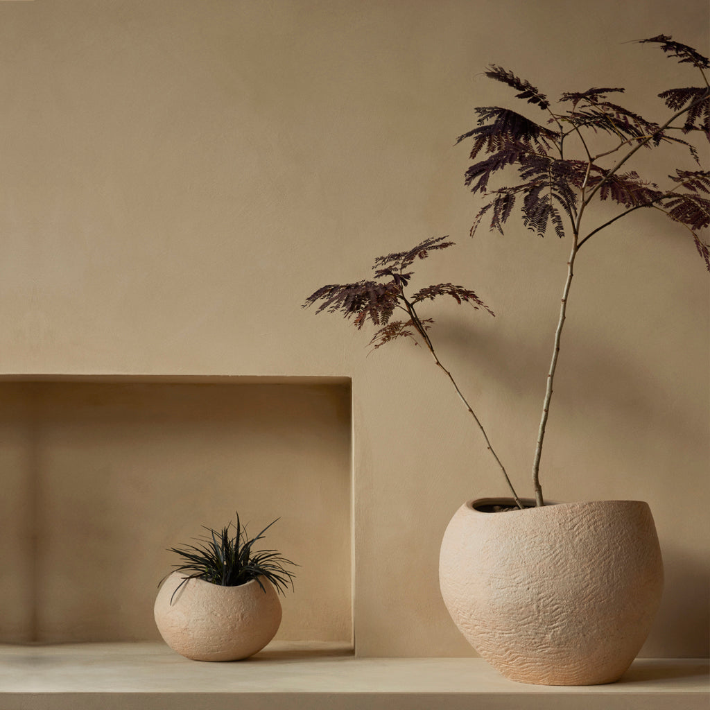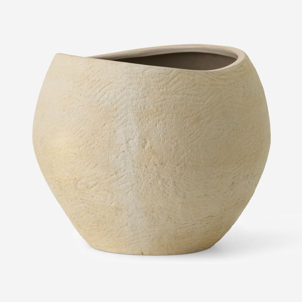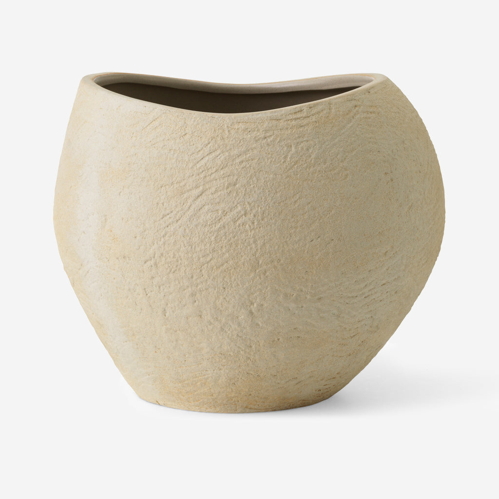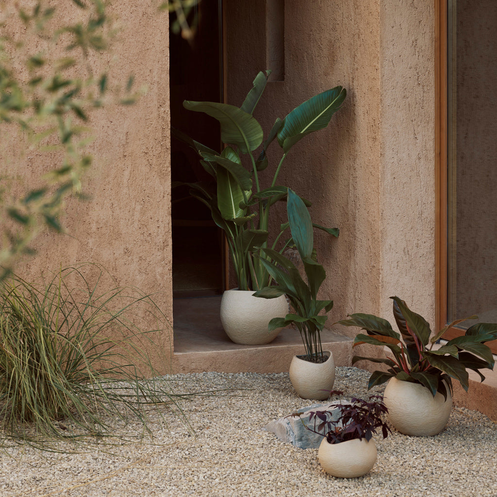 Characterised by their curves and irregular, furrowed surface, the Plantas Planters are made from matte ivory stoneware with a textured, natural appearance. Each piece is finished by hand and therefore entirely unique. Made for indoor use, the Plantas Planters can also be used outside when the guidelines included with purchase are followed.