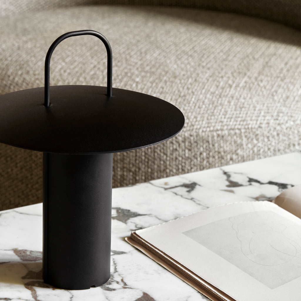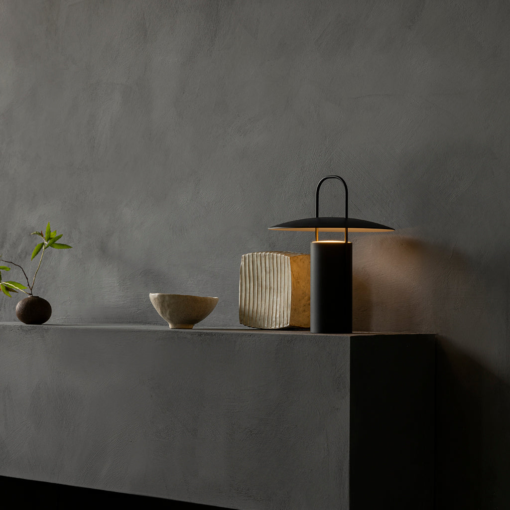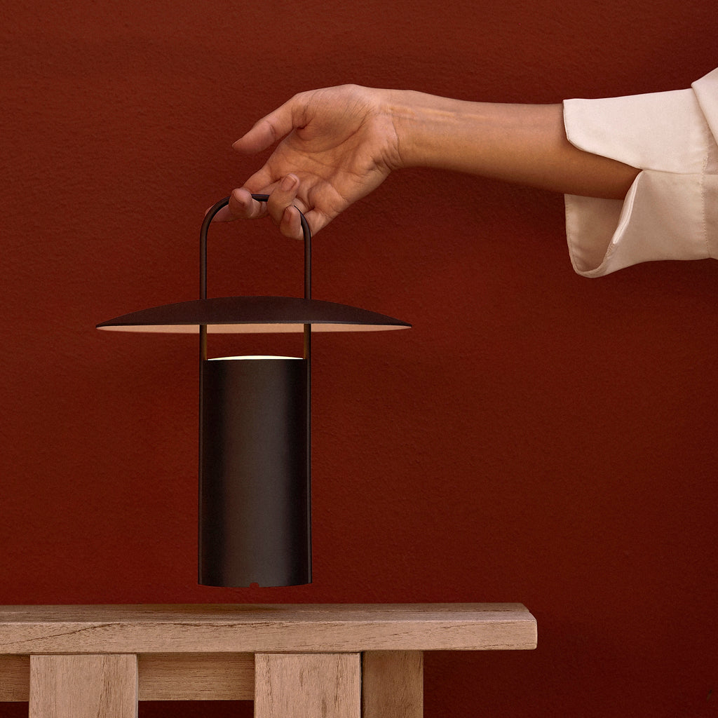 Daniel Schofield’s Ray Table Lamp for Audo has a distinctive silhouette inspired by old mining lamps. Its simplified design in powder-coated metal and glass features a practical top handle that makes it easy to carry the lamp to wherever light is needed – from a living room shelf or dining room table to a bedside cabinet.