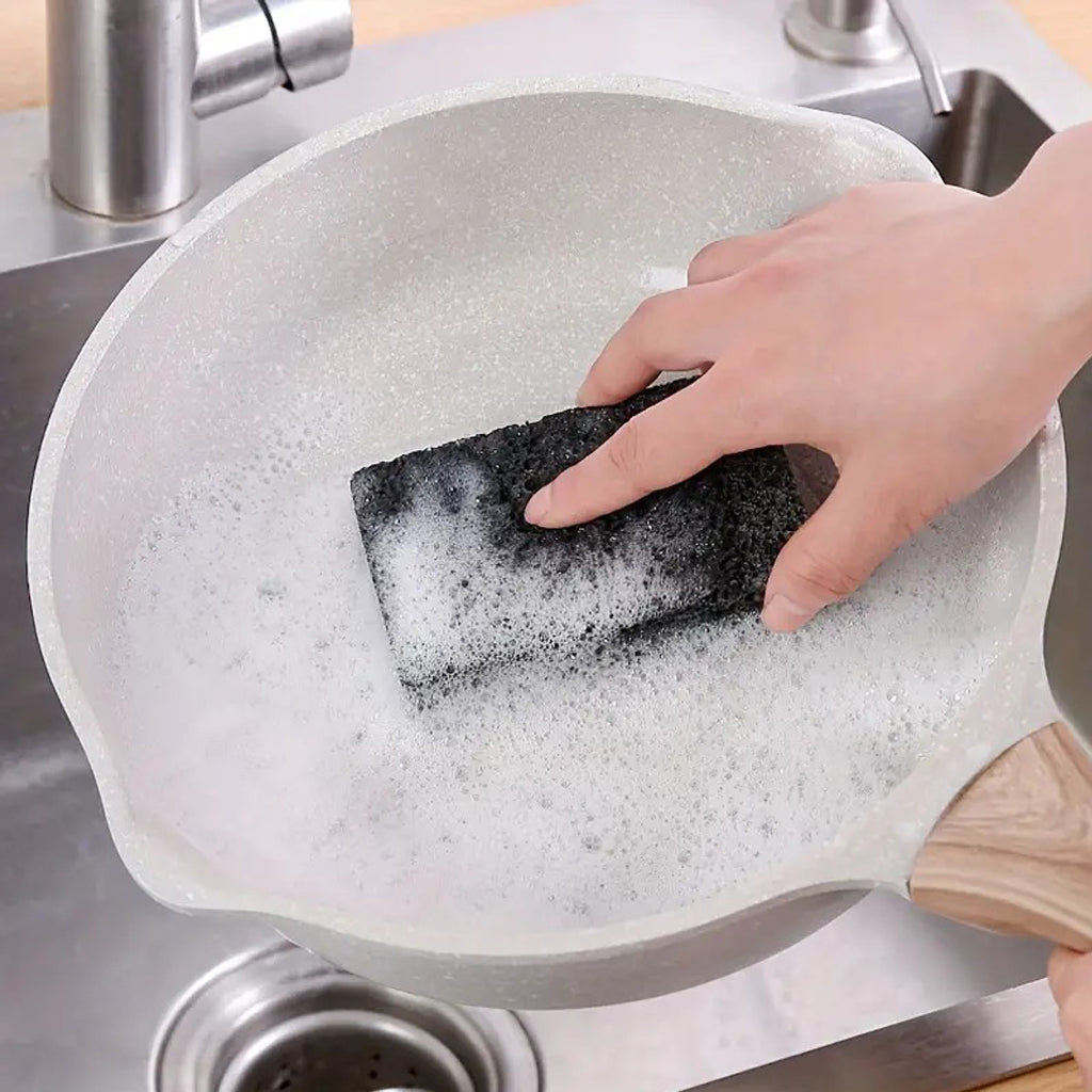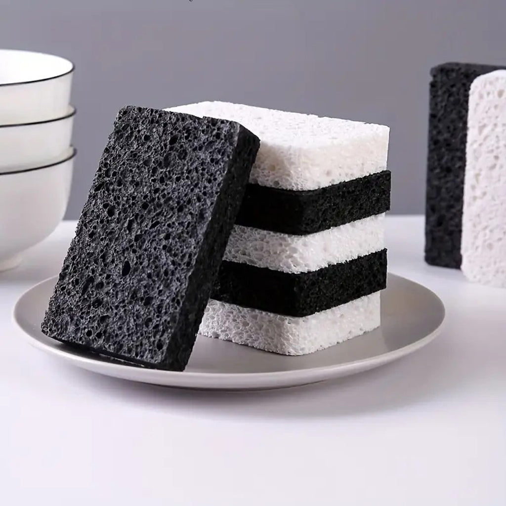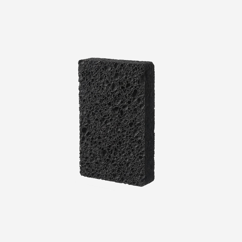 Down to the bare basics. This non-scratch cellulose sponge is made from natural wood pulp, cotton and hemp fibres. It has great absorptive properties to wipe and soak up wet spots in your kitchen and also has a surprising ability to resist stains. This all natural fully compostable compressed black cellulose sponges are super cool! They are compressed cardboard thin and when they touch water they expand into full sized absorbent kitchen sponge!