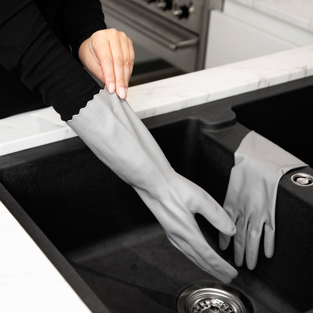 Be gone the bright yellow gloves. You can now complete your clean minimalist kitchen with Barkly Basics' grey kitchen gloves. Cotton lined, super durable and latex free, these grey gloves are easy on the eye and will make washing those dreadful pots and plans a breeze.