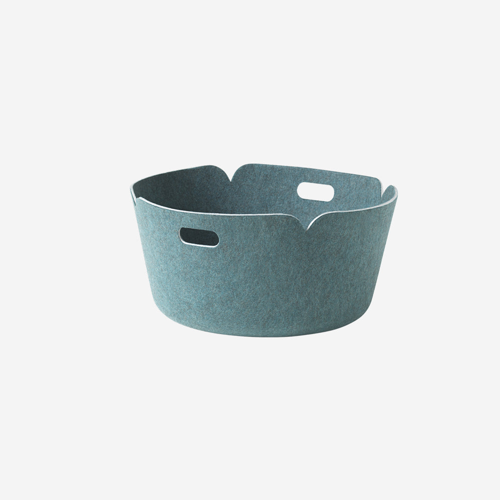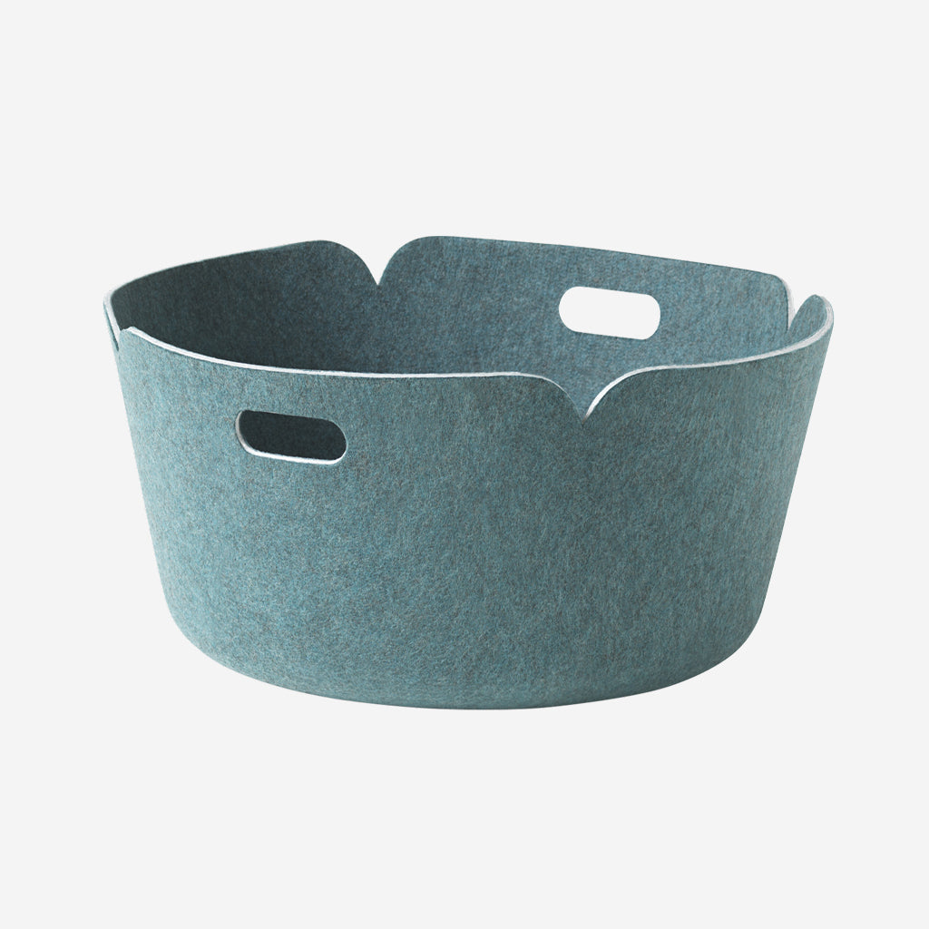 Made from a felt made of recycled plastic bottle fibers, the Restore Round Basket is a functional and versatile storage unit that can be used for almost any object from laundry to blankets to children’s toys.