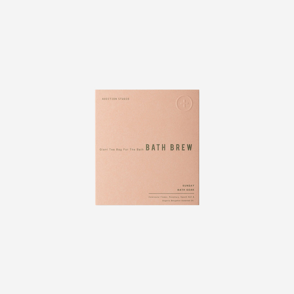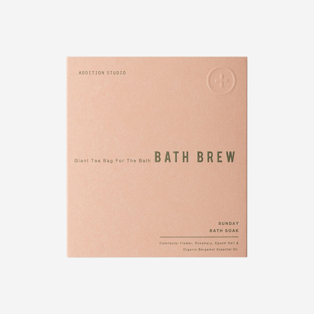 Addition Studio's Bath Brew is a giant tea bag blended by hand for the bath and used as a remedial & relaxing bath soak. Rich in natural ingredients carefully selected to help you unwind, the Sunday Bath Tea Bath Brew is a tea bag for your bath, inviting you to soak in a rejuvenating blend of aromatic ingredients like rosemary and bergamot, along with calendula and epsom salts to freshen your skin.