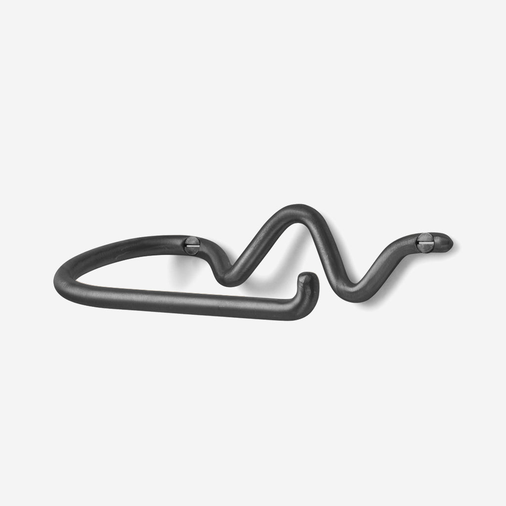 Curvature is a series of organically shaped accessories for the home that have been hand formed in pure, solid blackened brass with a matte finish. The whimsical curves juxtapose the solidity of the material, and make a feminine, functional addition to any bathroom. Crafted by hand, no two hooks are 100% identical.