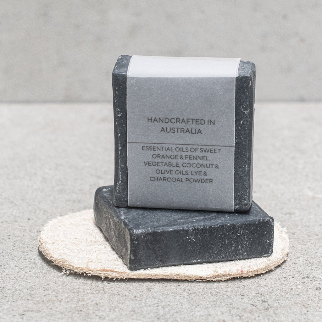 Handmade charcoal soap with all natural ingredients and essential oils, wrapped in glassine paper. Throws a wonderful scent through the bathroom after each use.