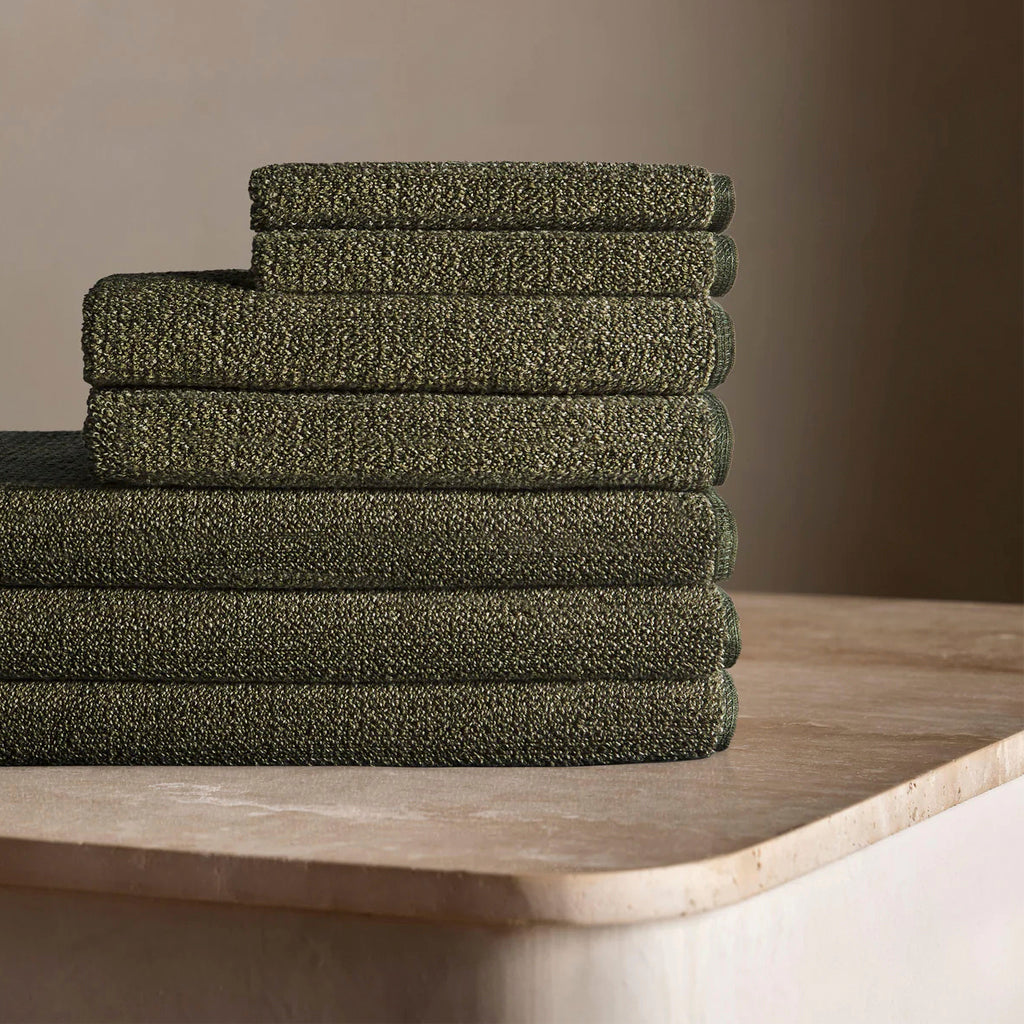 L&M Home's Olive Tweed Bath Mat is a modern and elegant twist on a classic, with olive, green and white tones woven together to create a beautiful deep green towel. This sophisticated and neutral towel will suit any bathroom and add plenty of texture. Generous sizes and 650gsm ensure these towels are soft and absorbent.