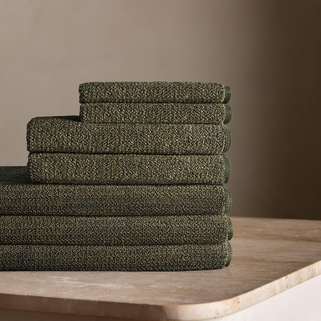 L&M Home's Olive Tweed Bath Towel is a modern and elegant twist on a classic, with olive, green and white tones woven together to create a beautiful deep green towel. This sophisticated and neutral towel will suit any bathroom and add plenty of texture. Generous sizes and 650gsm ensure these towels are soft and absorbent.