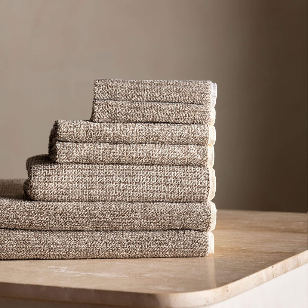 L&M Home's Taupe Tweed Bath Sheet is a modern and elegant twist on a classic, with black, grey and white tones woven together to create a beautiful deep coal towel. This sophisticated and neutral towel will suit any bathroom and add plenty of texture. Generous sizes and 650gsm ensure these towels are soft and absorbent.