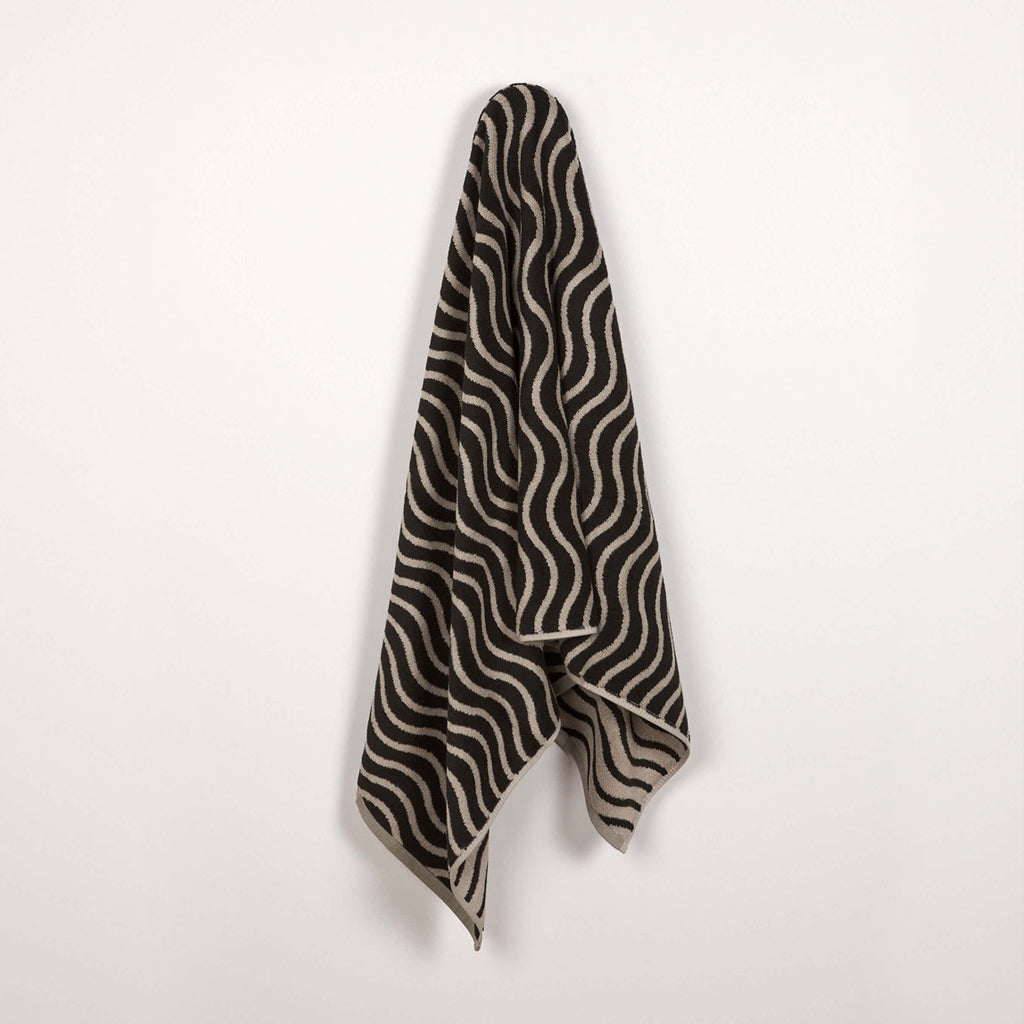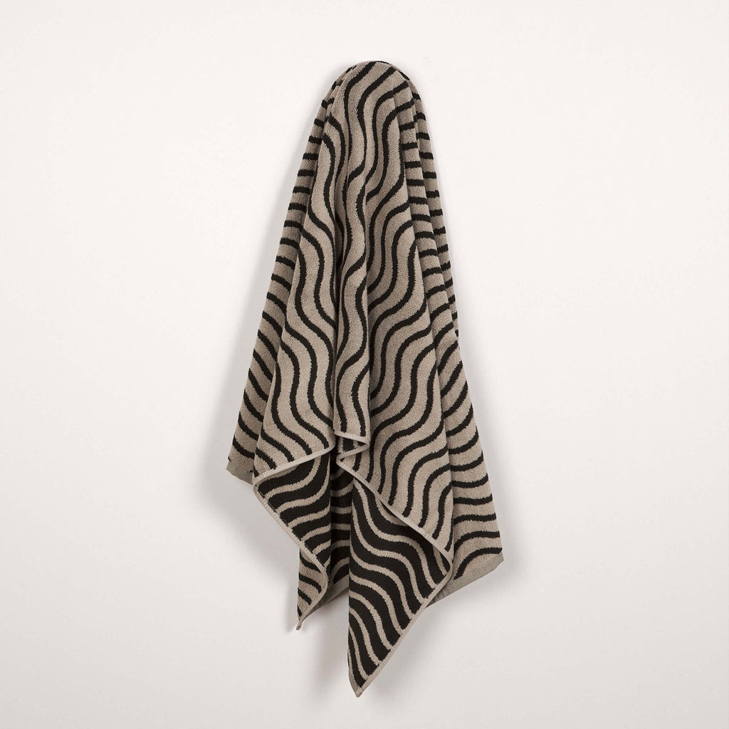 Made from ultra-soft and absorbent 650gsm cotton, this playful range features a reversible colourway. The soft Natural wave contrasting against Black makes a subtle statement in any bathroom, by the pool or at the beach.