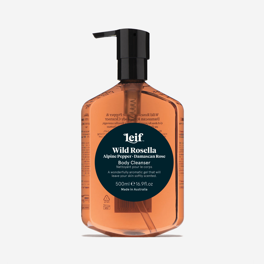 Leif's Wild Rosella Body Cleaner contains native Australian botanical oils that lather up to cleanse and refresh the skin. Leif's own off-kilter hibiscus, the Wild Rosella is rich in antioxidants. Alpine Pepper and Damascan Rose add depth and complexity.