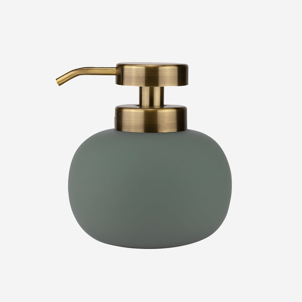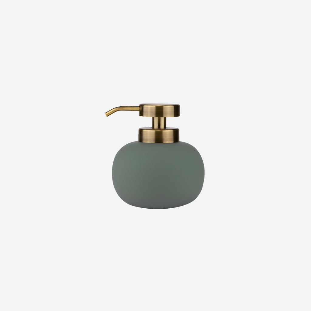 Elevate your bathroom with Mette Ditmer's Lotus low soap pump in frost green. The matte rubber coated ceramic and soft curved design will add a touch of elegance to any bathroom aesthetic. Complete the look with the matching dispensers in the same series.