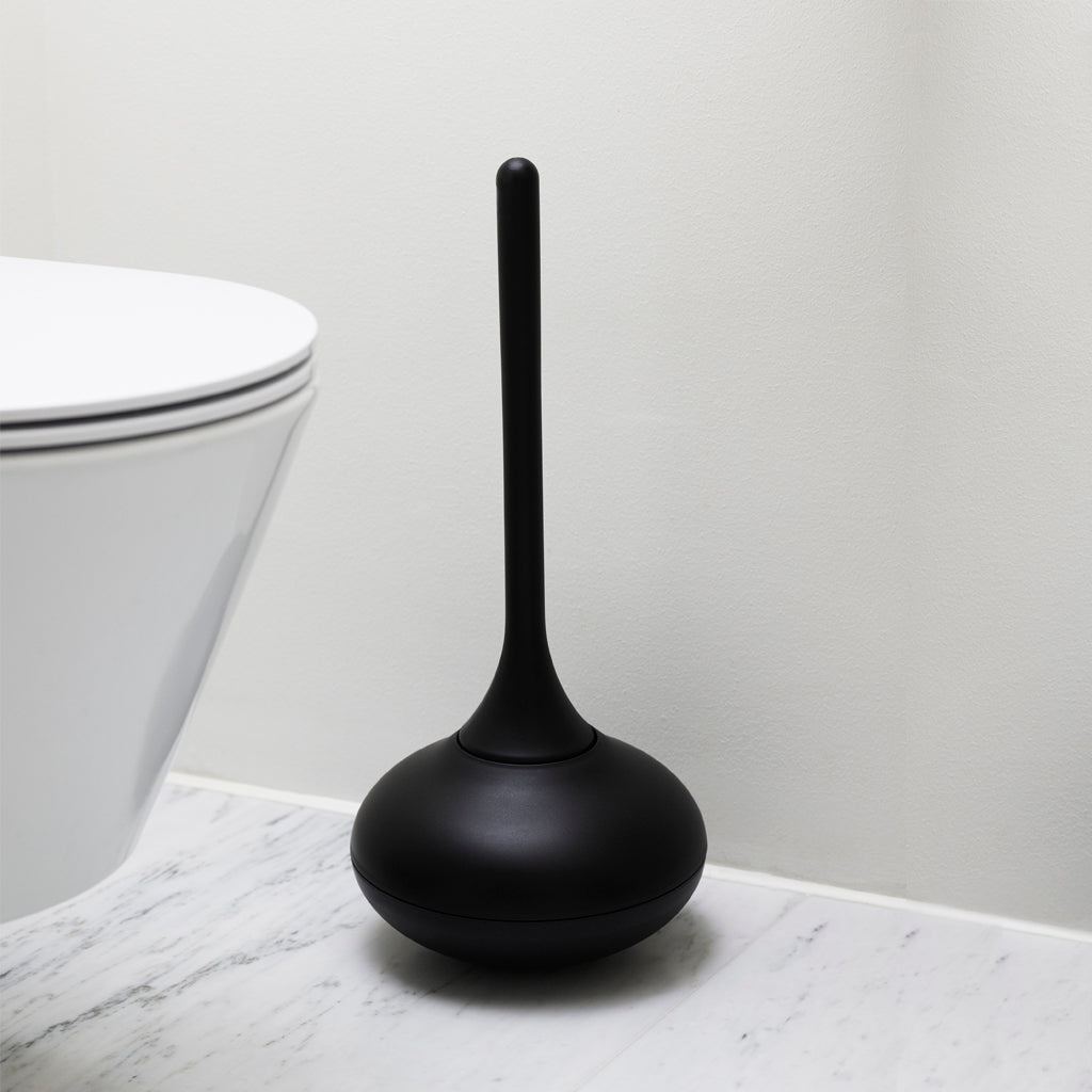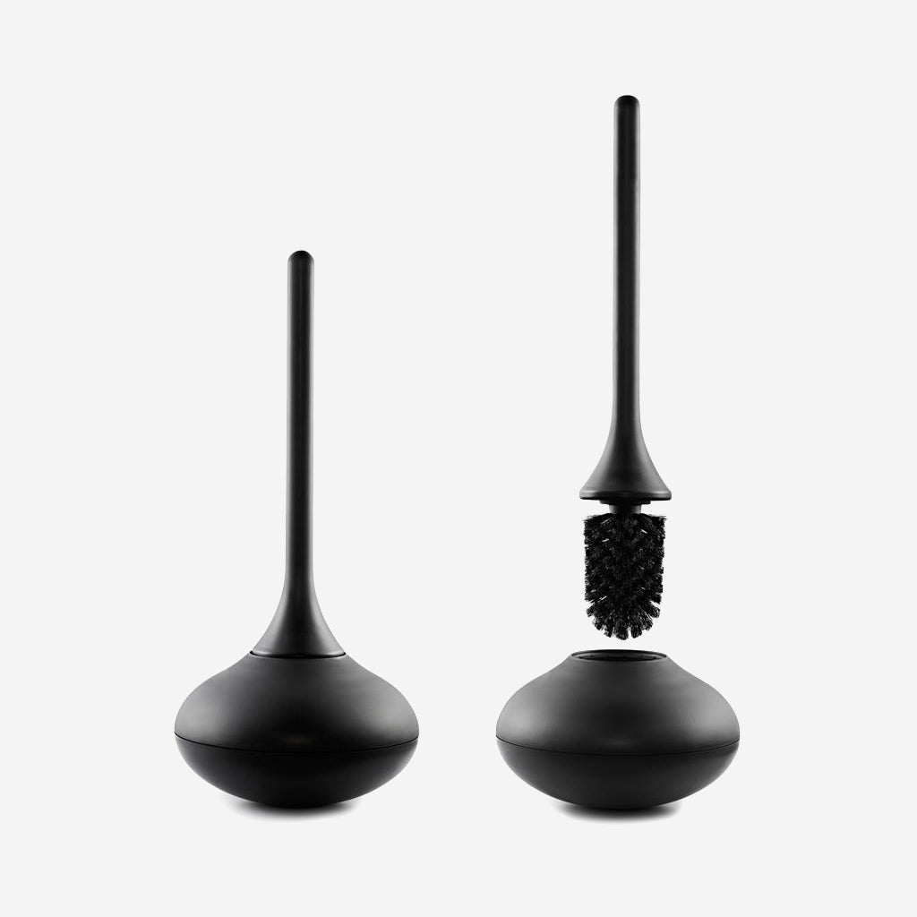 Ballo is an unconventional toilet brush with a playful expression. The toilet brush has an organic shape and features a curved bottom that allows it to wobble back and forth without tilting over.
