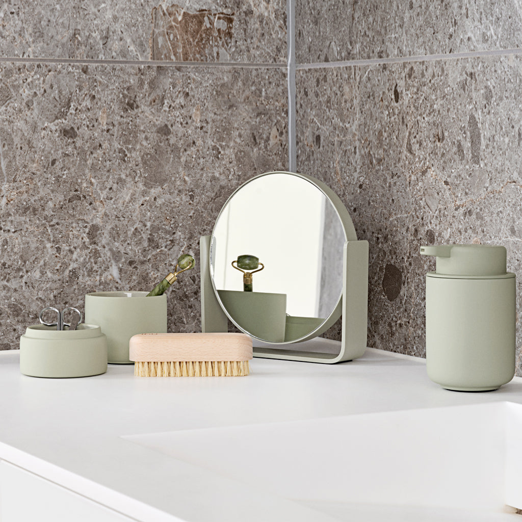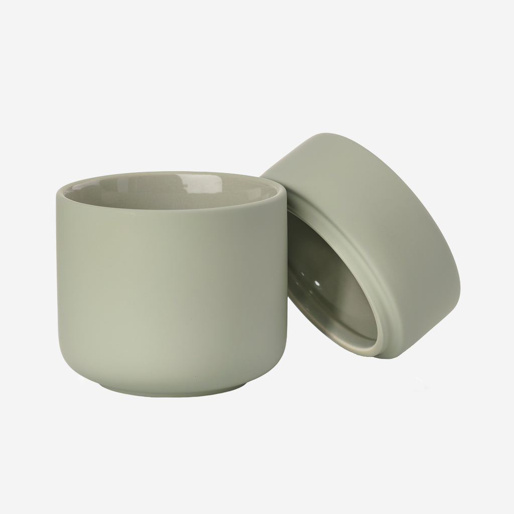 The ceramic jar with a lid has the same simple and organic style as the rest of the beautiful Ume bathroom range. It can hold your hair clips, makeup, cotton buds, cotton rounds or whatever else you like to have within reach, but not necessarily on display, in the bathroom.