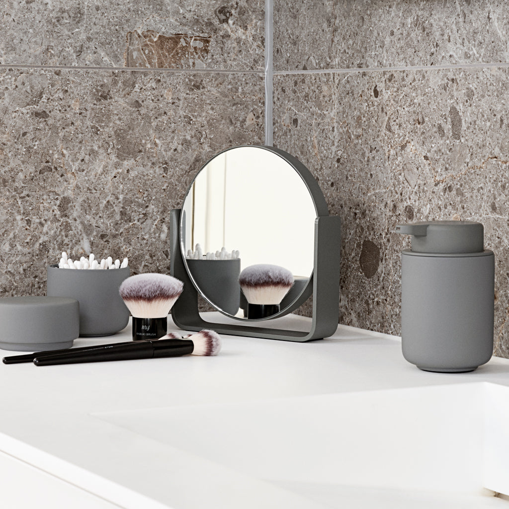The ceramic jar with a lid has the same simple and organic style as the rest of the beautiful Ume bathroom range. It can hold your hair clips, makeup, cotton buds, cotton rounds or whatever else you like to have within reach, but not necessarily on display, in the bathroom.
