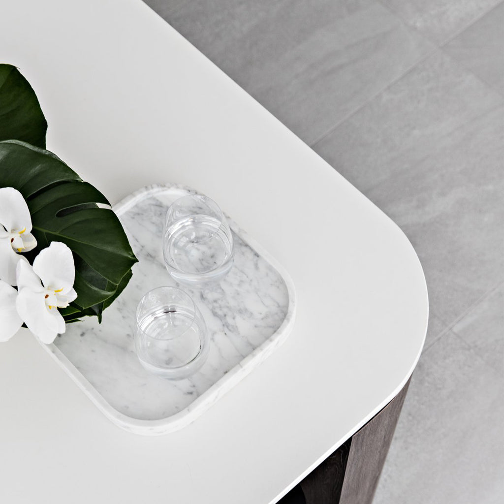 Squircle is a fine mix between a Circle and a Square. The best of both worlds we think! These honed trays are superbly finished featuring single joins, arrissed edges and solid Italian Carrara marble. They are perfect for showcasing candles, perfumes, jewellery, vases, salt & pepper shakers...or just about anything your imagination allows. They are an elegant piece that will work seamlessly in any room of the home.