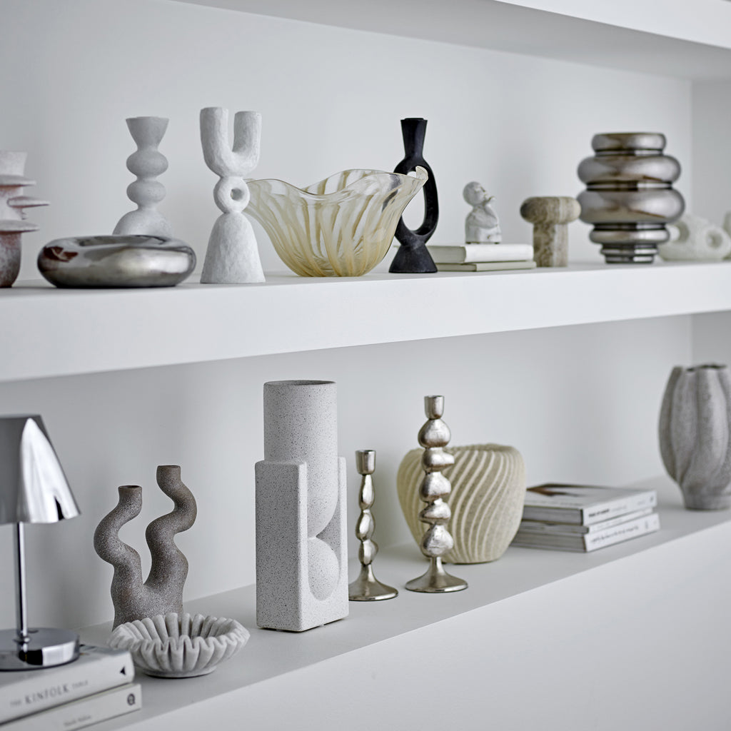 The Bijan Candle Holder by Bloomingville is made of polyresin. It has a black and raw metallic look. Fits candles with a diameter of Ø2.2cm