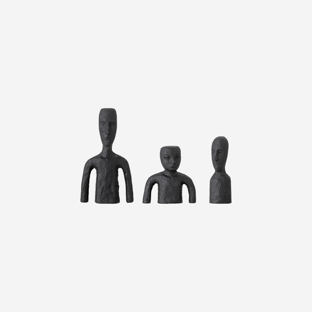 The Rhea Sculpture is made up of three separate pieces cast from metal with a matt black finish. In varying heights, each of the three pieces can be used as separate decorative items, displayed on or beside books or together for more sculptural impact.