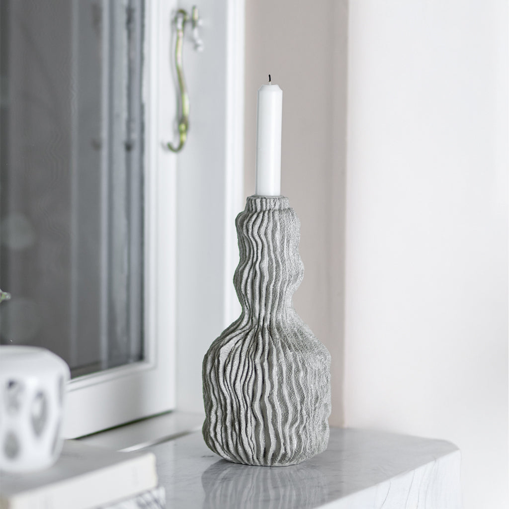 The Briar Candle Holder by Bloomingville is made of polyresin with a raw, wavy surface inspired by shapes by nature. The vibrant structure and gray color give the candle holder a sculptural look. Fits candles with a diametre of 2.2cm.