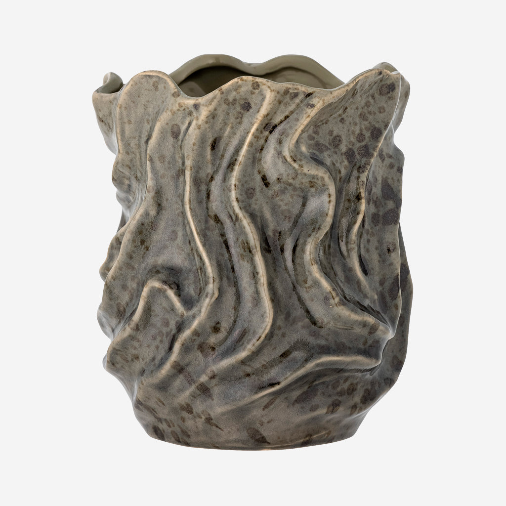 The Soumia Deco Vase by Bloomingville is made of stoneware and has a shape inspired by nature and sandy beaches. The vase has a beautiful and unique texture that adds an organic touch to any room. Due to the nature of the glaze and the handmade technique, color variations may occur.