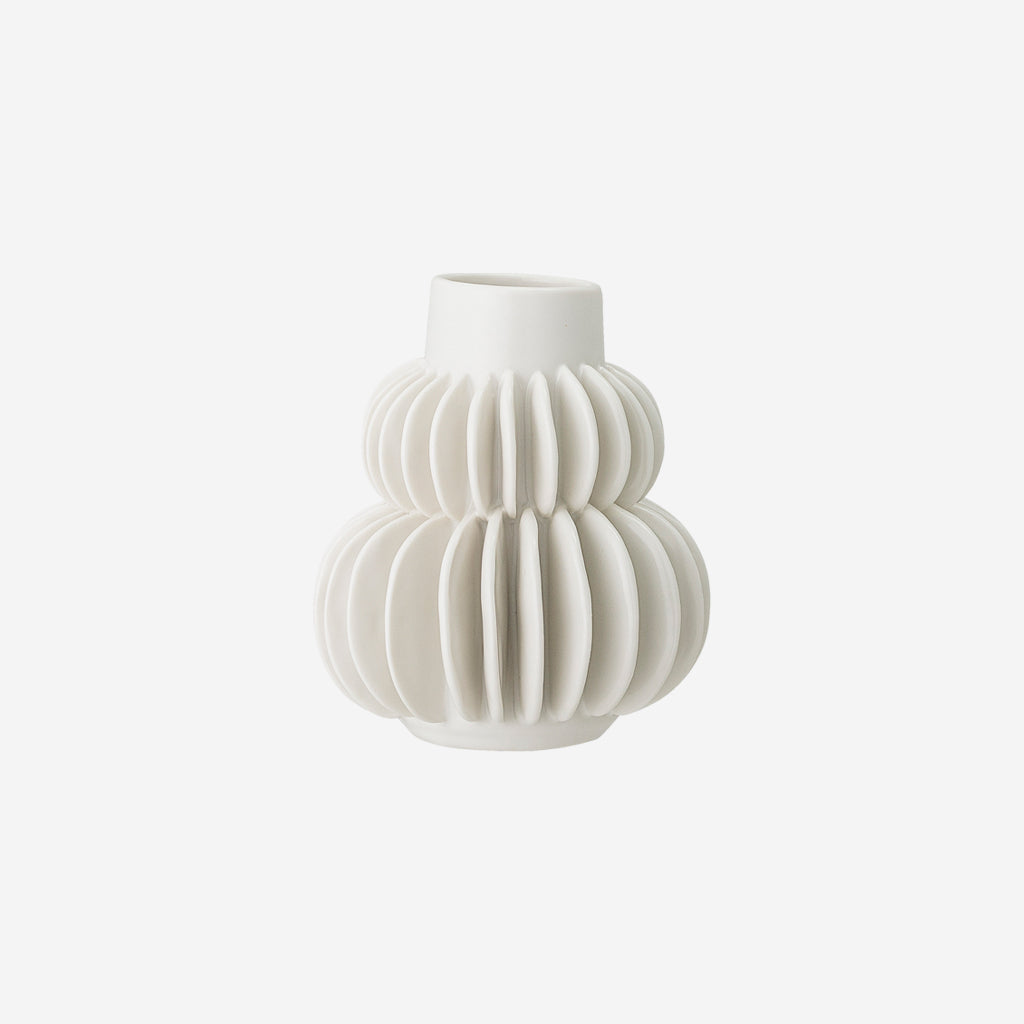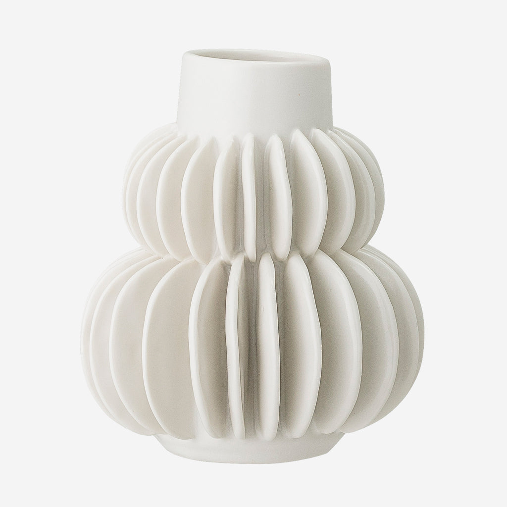 Add the perfect finishing touch to your home with this unique vase from Bloomingville. Made from stoneware, it features two bands of fan like pleats and has been finished in a white colour.