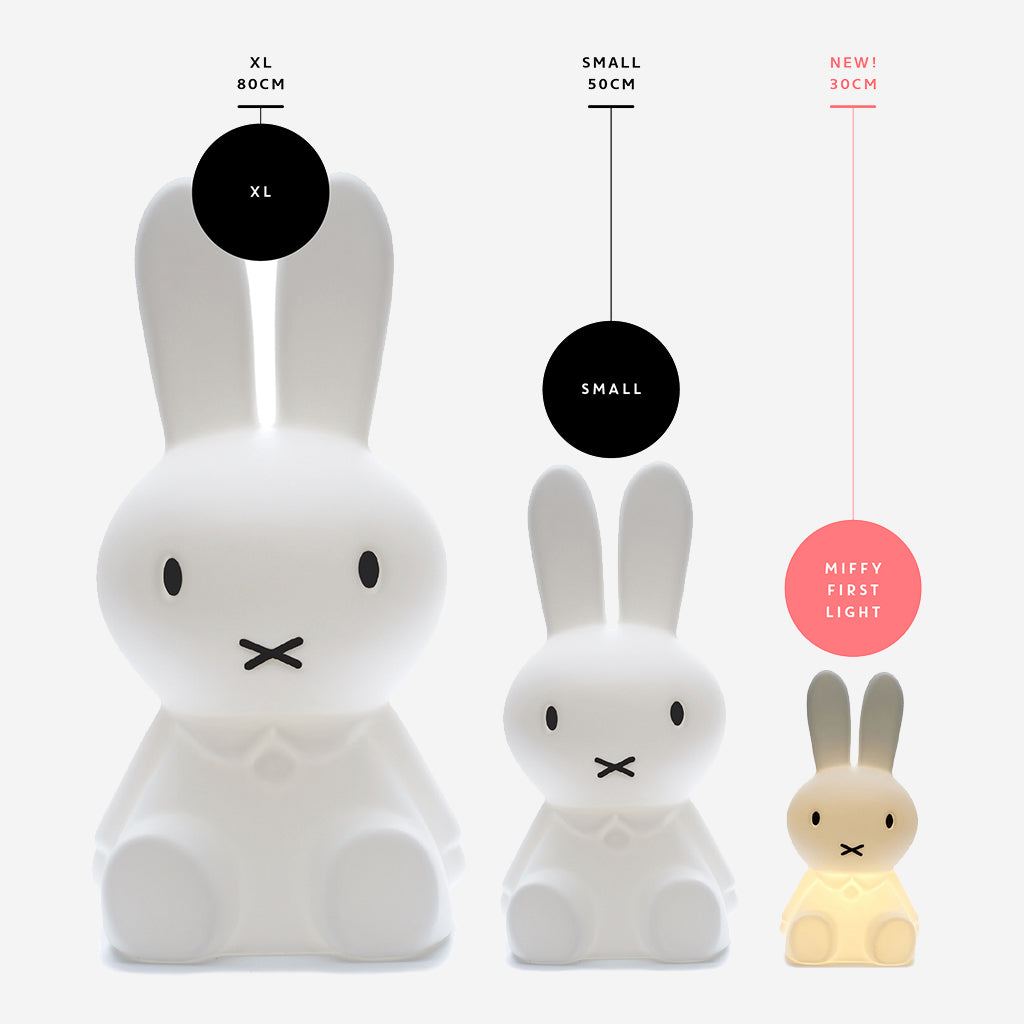 Sweet and serene, this Miffy lamp works as nightlight for kids and adults alike. This charming First Light Lamp is just 30cm and made from soft silicone, and is more playful and tactile for even the littlest of babies.