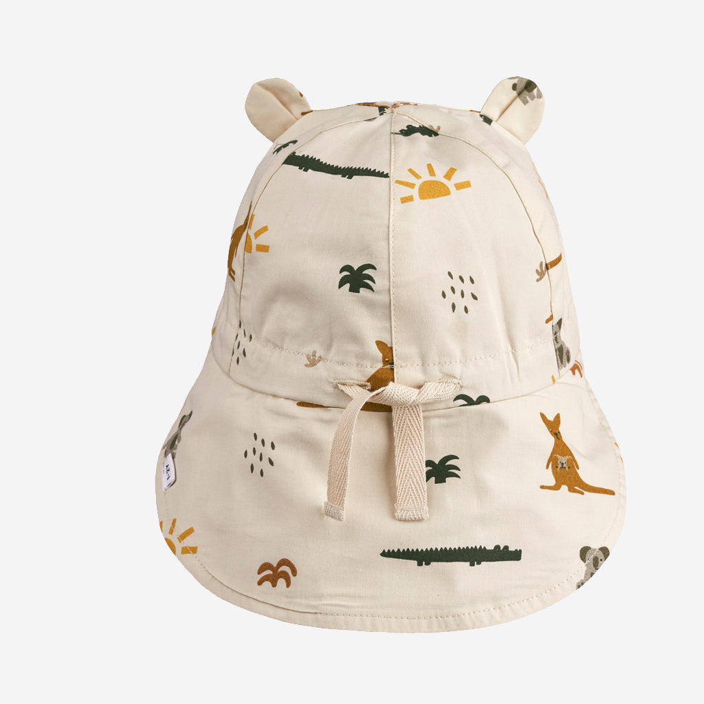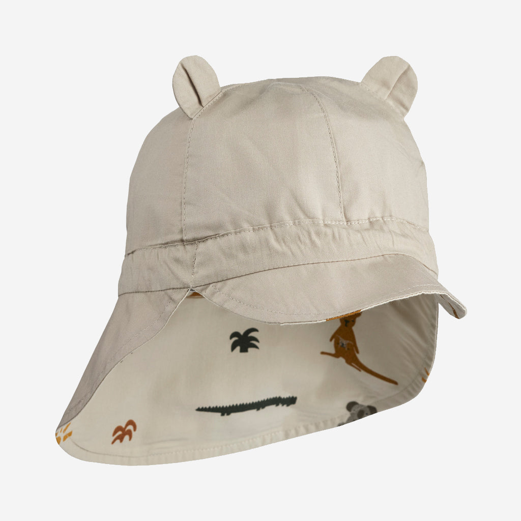 The lightweight Liewood Gorm Reversible Sun Hat with cute ears and Aussie Sea Shell print, has a neck flap for ultimate protection. Made from 100% organic cotton, it provides a sweat-free and breathable feeling. Drawstring helps secure the hit to the perfect fit.