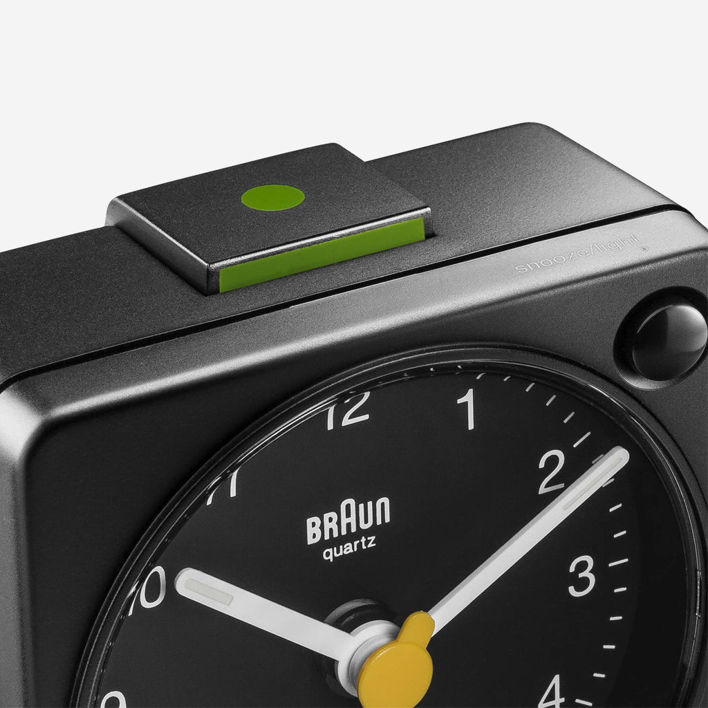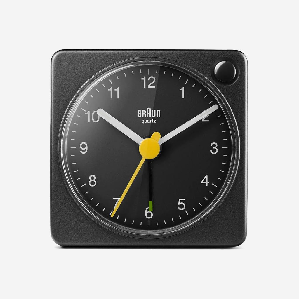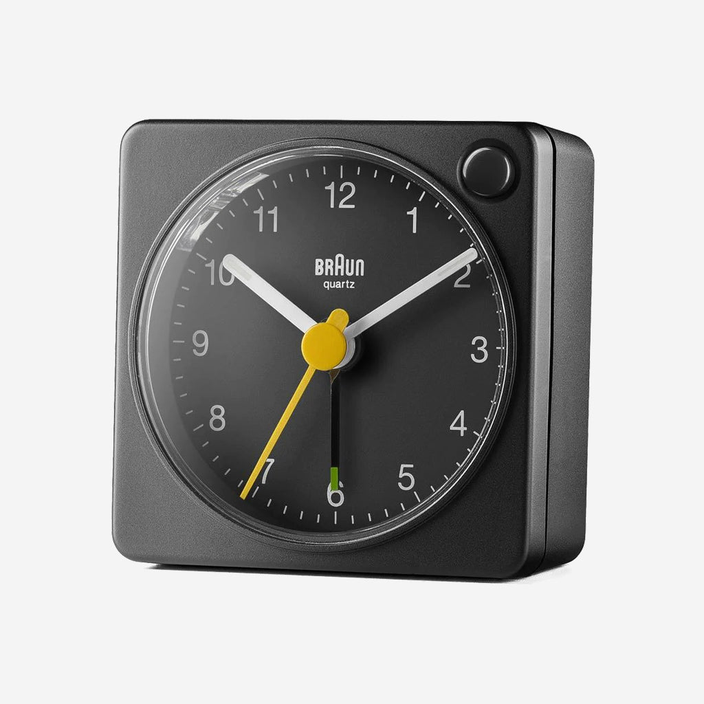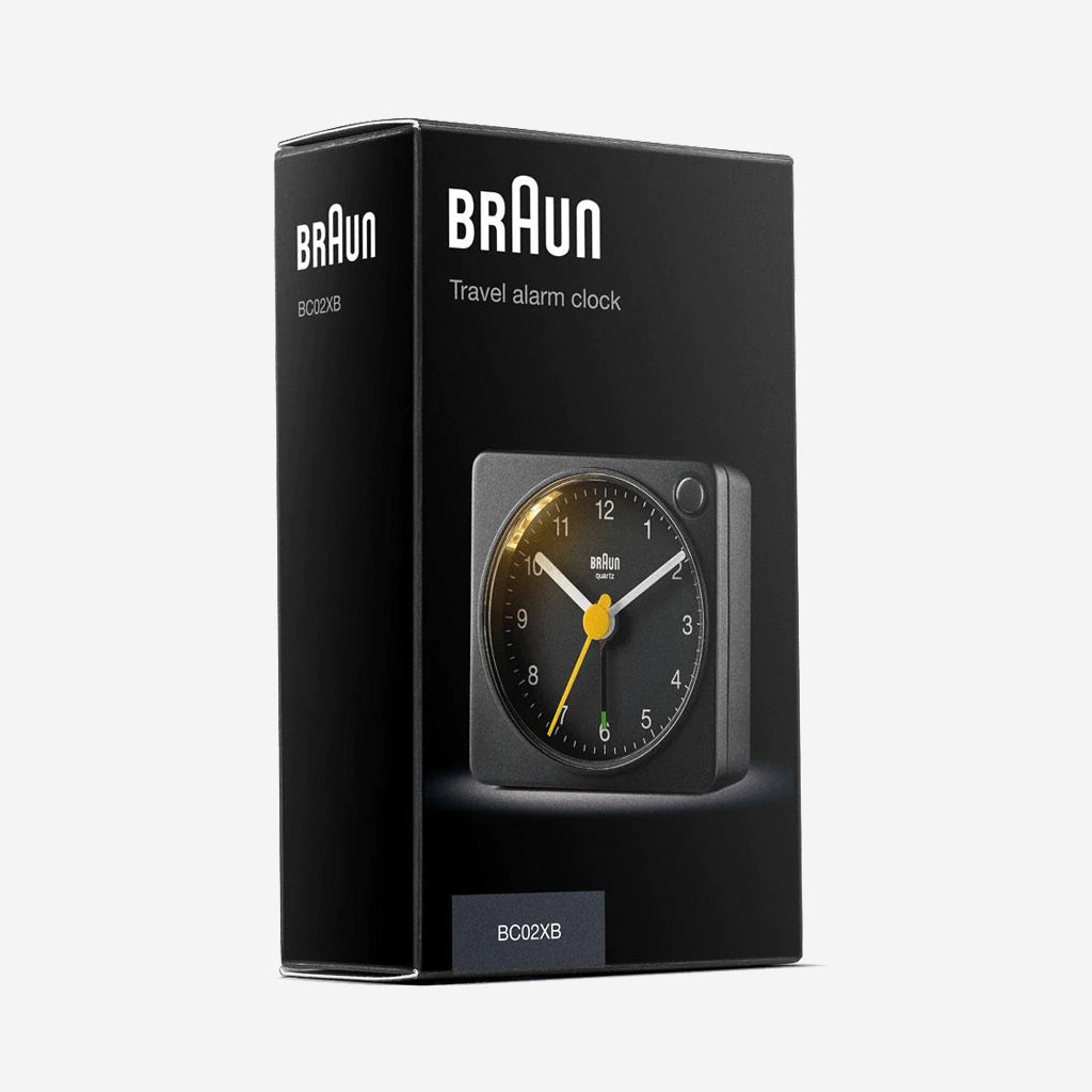 The BC02XB classic travel analogue alarm clock features an easy to read dial layout and the iconic yellow second hand that has become synonymous with Braun’s award winning design history. The design of the BC02 originates from the renowned AB 1, designed in the late 80’s by Dietrich Lubs. Updated to include an improved movement and luminous tipped hour and minute hands. The clean simplistic dial and contrasting hands with luminous tips offer great legibility, and the quartz tick movement is quiet and precise. Its compact size and lightweight construction make it an ideal travel companion. Made to last from reliable and durable raw materials, today’s award-winning range of Braun clocks are designed and built with a focus on quality and precision.