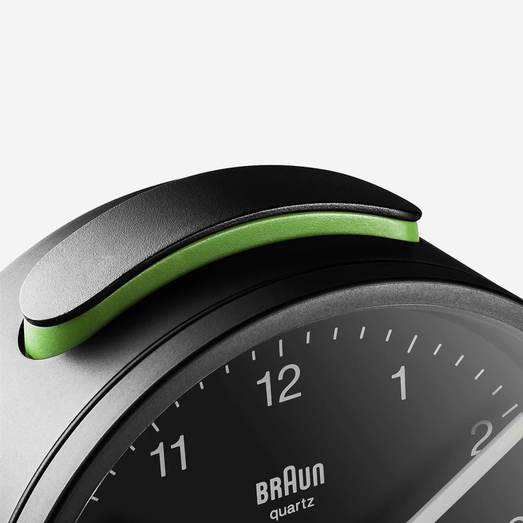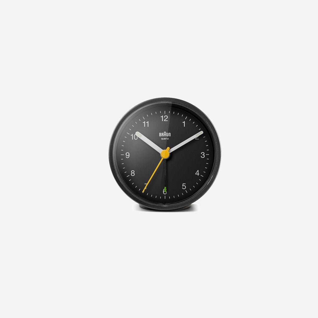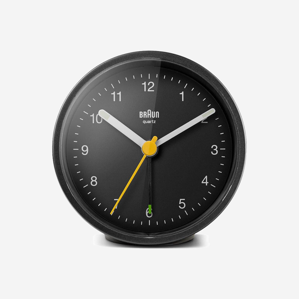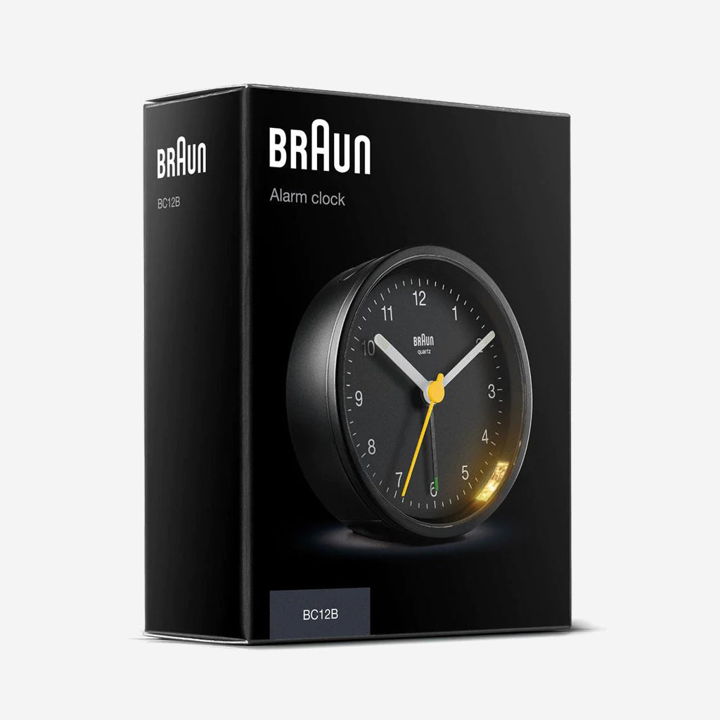 The BC12B classic alarm clock features an easy to read dial with the iconic yellow second hand that has become synonymous with Braun’s award winning design. The clean simplistic look and ease of use makes this an outstanding Braun clock. This clock has been updated to include an integrated foot snooze / light feature, improved movement and luminous tipped hour and minute hands. The clean simplistic dial and contrasting hands with luminous tips offers great legibility, and the quartz tick movement is quiet and precise.
