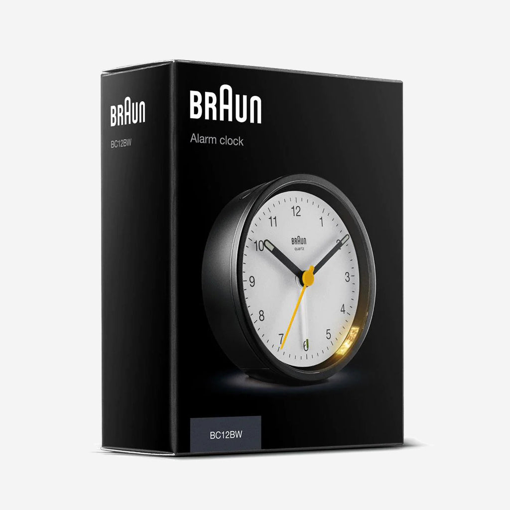 Braun BC12BW Classic Analogue Alarm Clock Black White