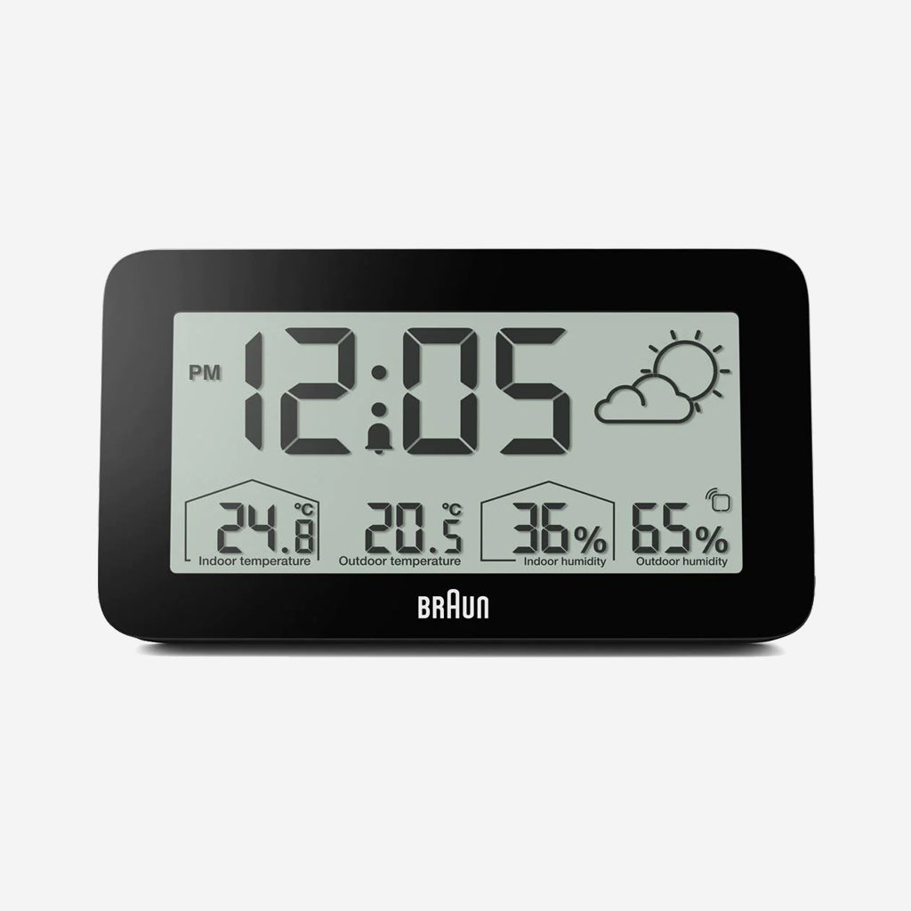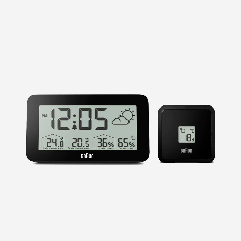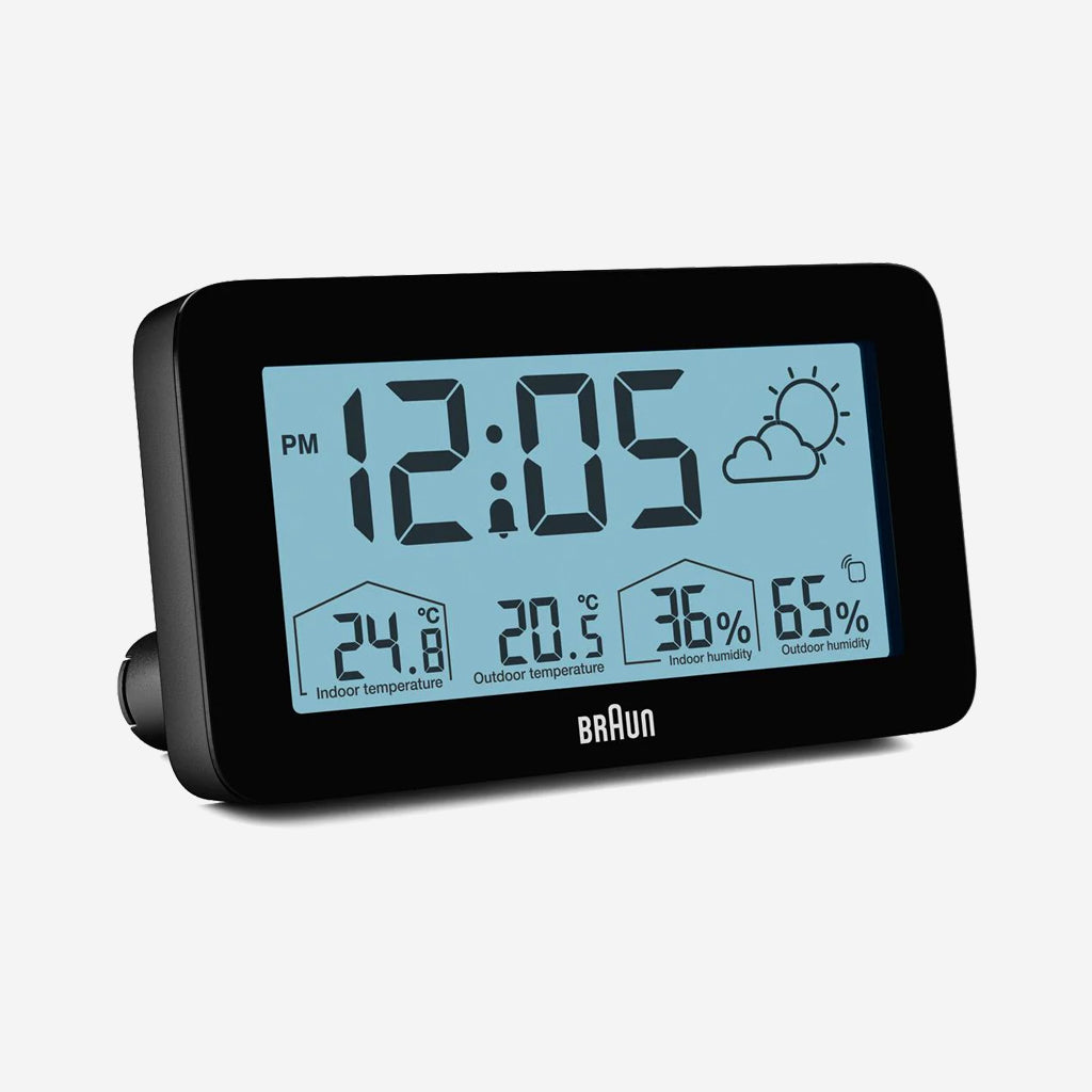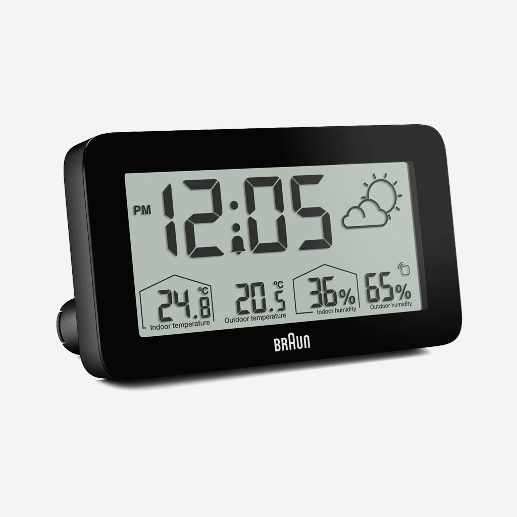 This Braun digital weather station features a positive LCD display with a continuous backlight function that illuminates the display when in a low-light environment to maximise legibility at night. The BC13BP can be set to either 12 or 24 hour mode, and displays the time, The BC13BP has a customisable interface that can display indoor and outdoor temperature (°C or °F) and indoor and outdoor humidity. The outdoor sensor also features a temperature display.