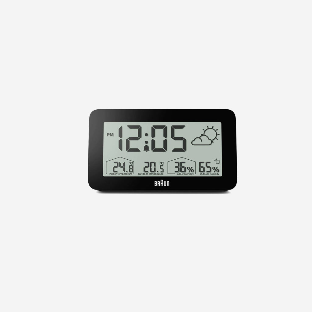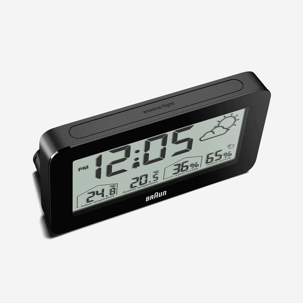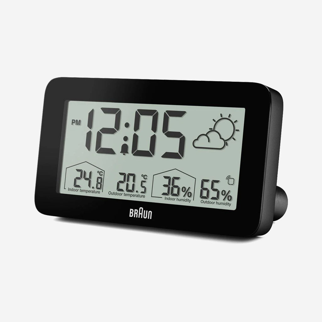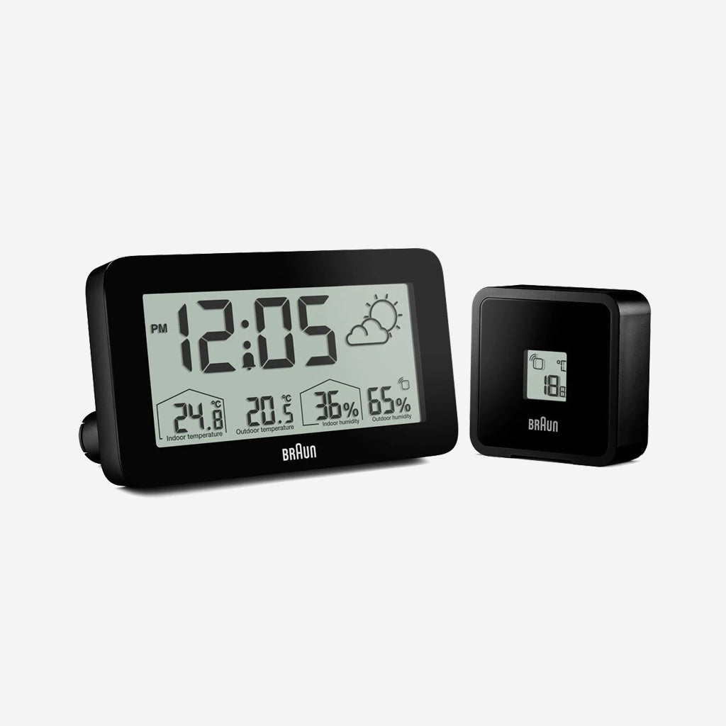 This Braun digital weather station features a positive LCD display with a continuous backlight function that illuminates the display when in a low-light environment to maximise legibility at night. The BC13BP can be set to either 12 or 24 hour mode, and displays the time, The BC13BP has a customisable interface that can display indoor and outdoor temperature (°C or °F) and indoor and outdoor humidity. The outdoor sensor also features a temperature display.