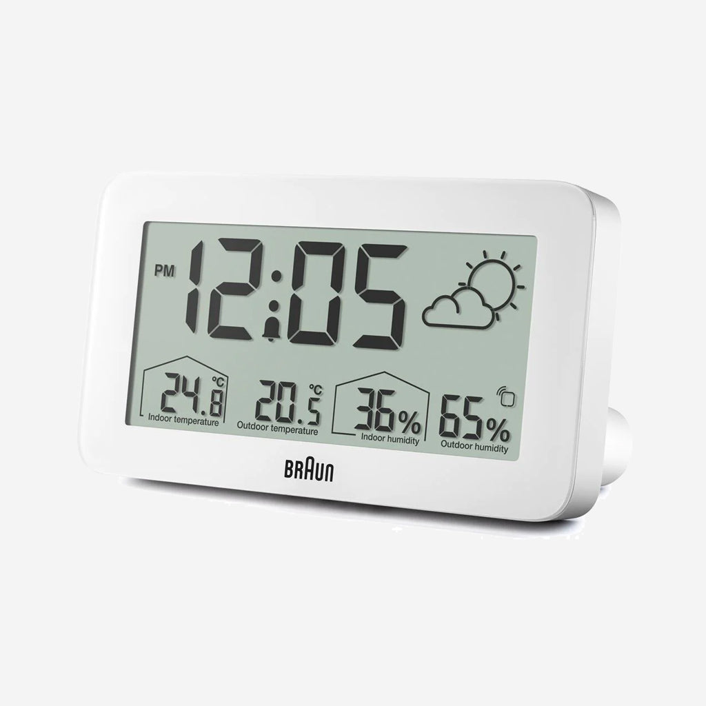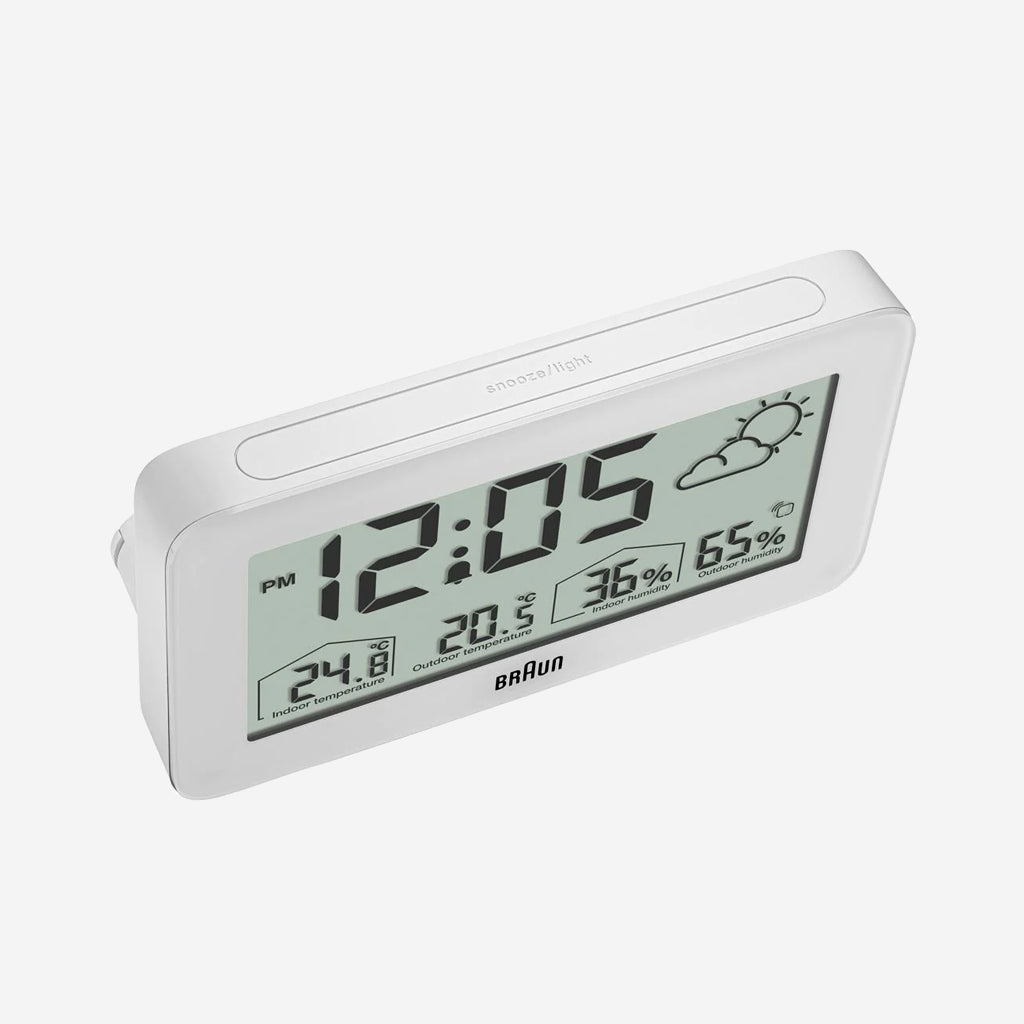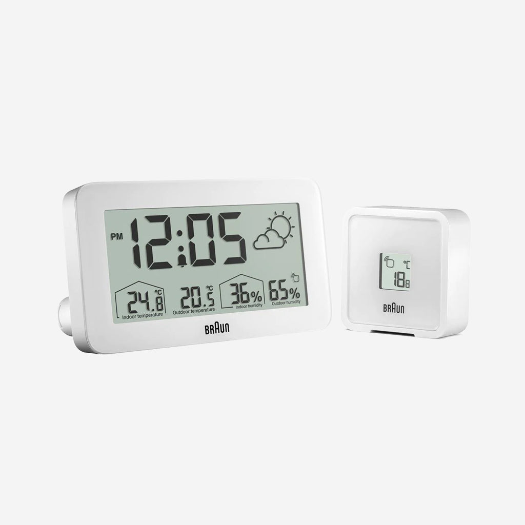 This Braun digital weather station features a positive LCD display with a continuous backlight function that illuminates the display when in a low-light environment to maximise legibility at night. The BC13WP can be set to either 12 or 24 hour mode, and displays the time, The BC13WP has a customisable interface that can display indoor and outdoor temperature (°C or °F) and indoor and outdoor humidity. The outdoor sensor also features a temperature display.