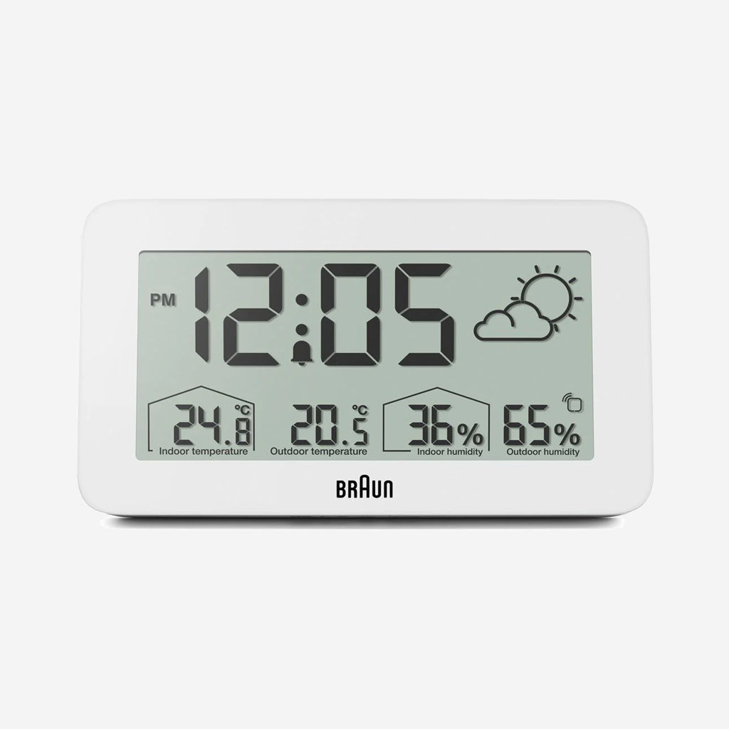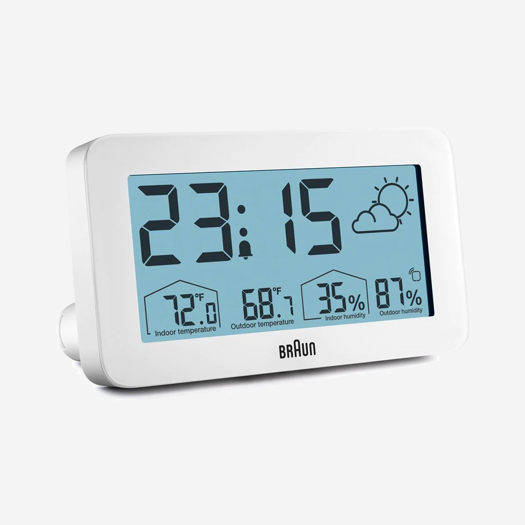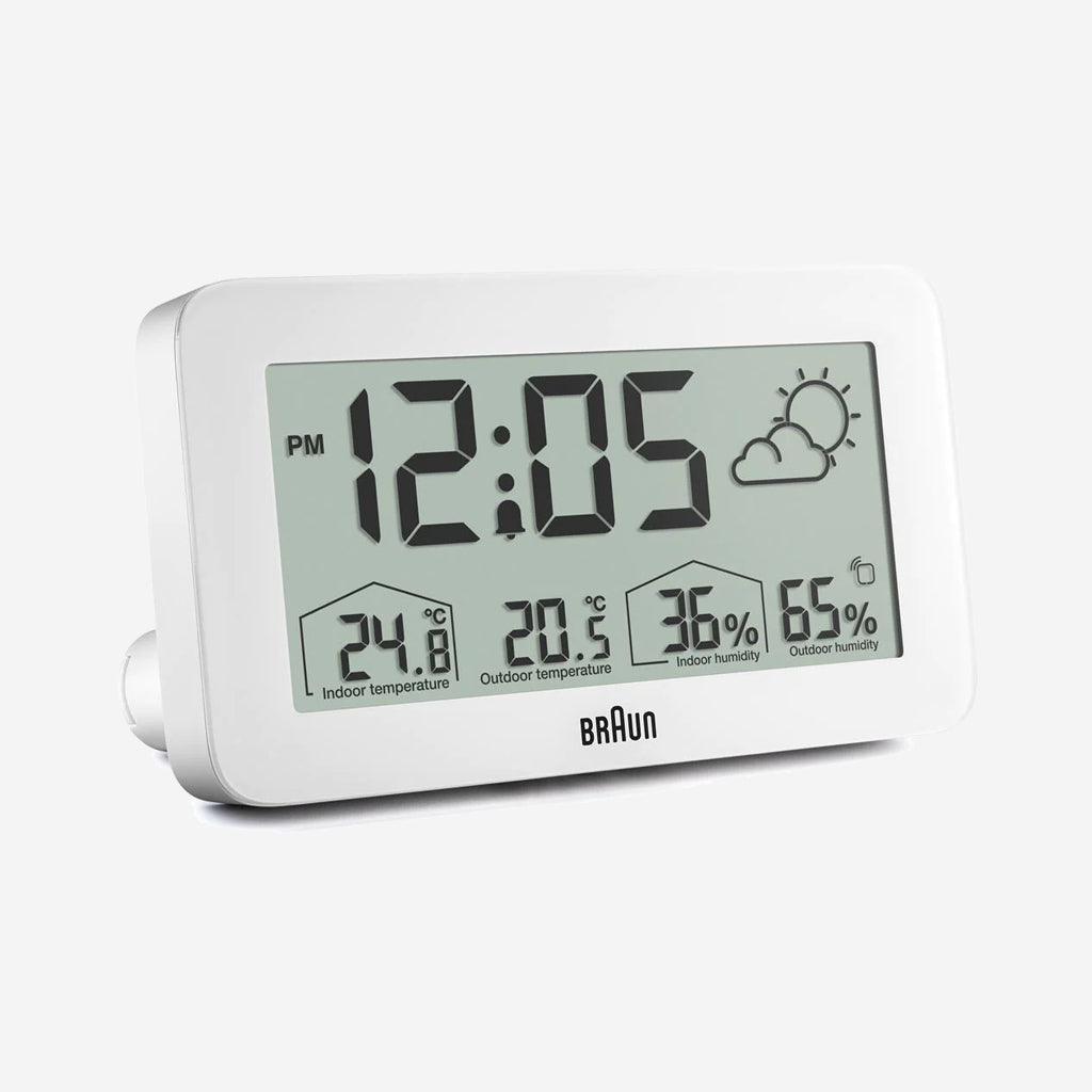 This Braun digital weather station features a positive LCD display with a continuous backlight function that illuminates the display when in a low-light environment to maximise legibility at night. The BC13WP can be set to either 12 or 24 hour mode, and displays the time, The BC13WP has a customisable interface that can display indoor and outdoor temperature (°C or °F) and indoor and outdoor humidity. The outdoor sensor also features a temperature display.
